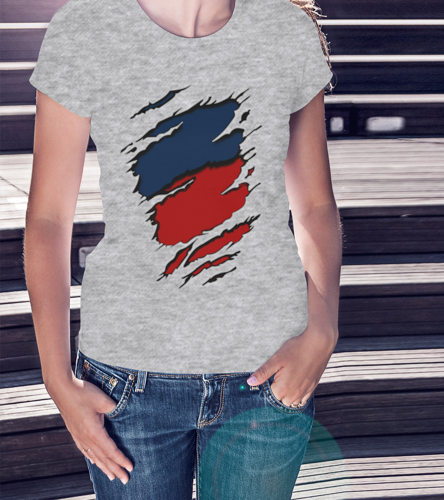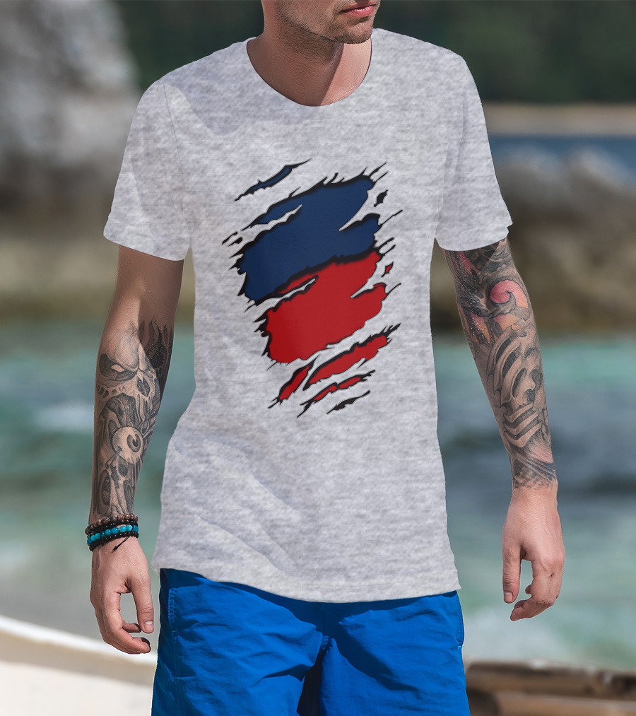 Nhap Blue And Red Torn Texture Claw Mark T-Shirt