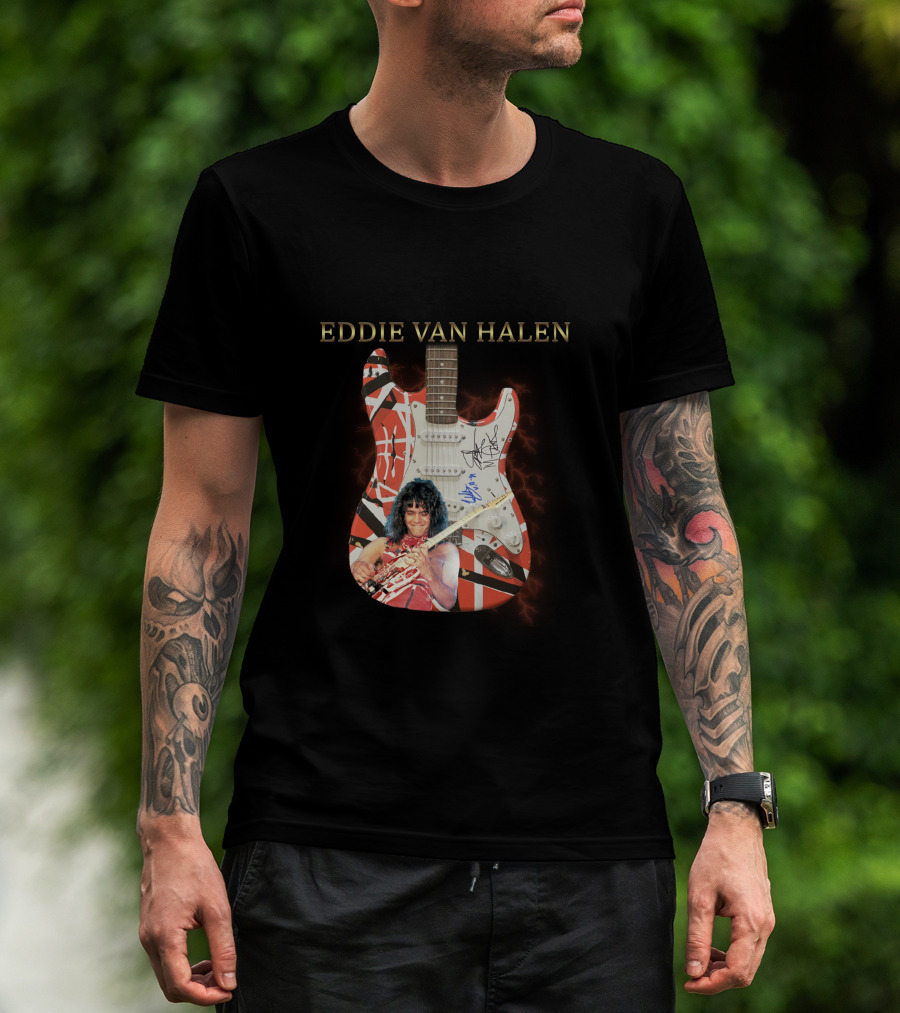 Eddie Van Halen Signature Guitar With Iconic Red And White Stripes T-Shirt