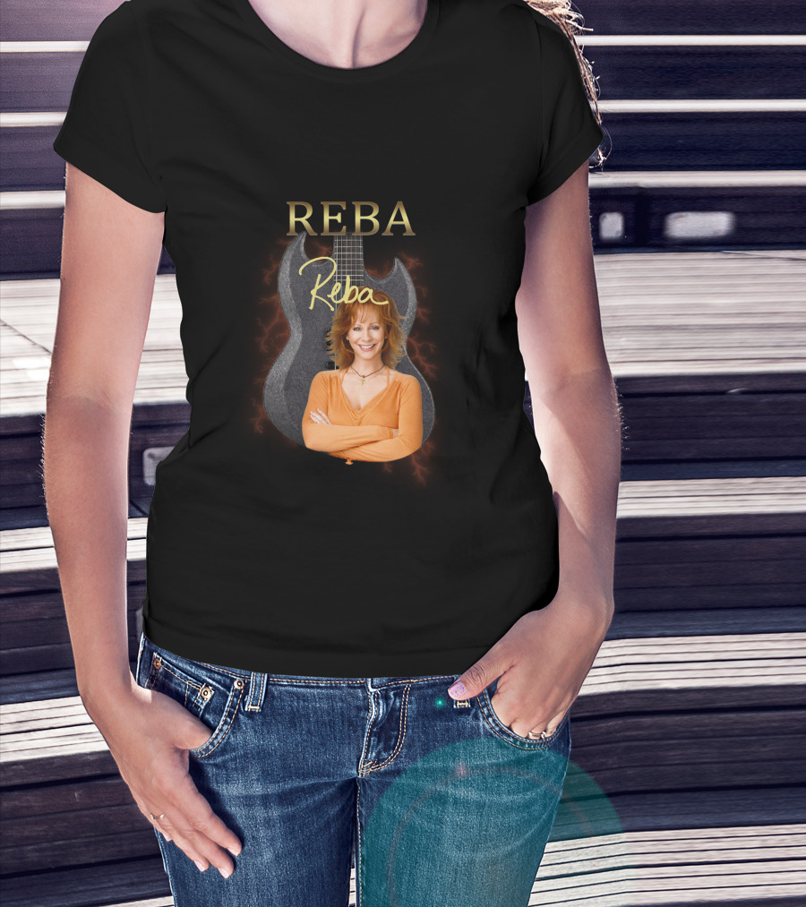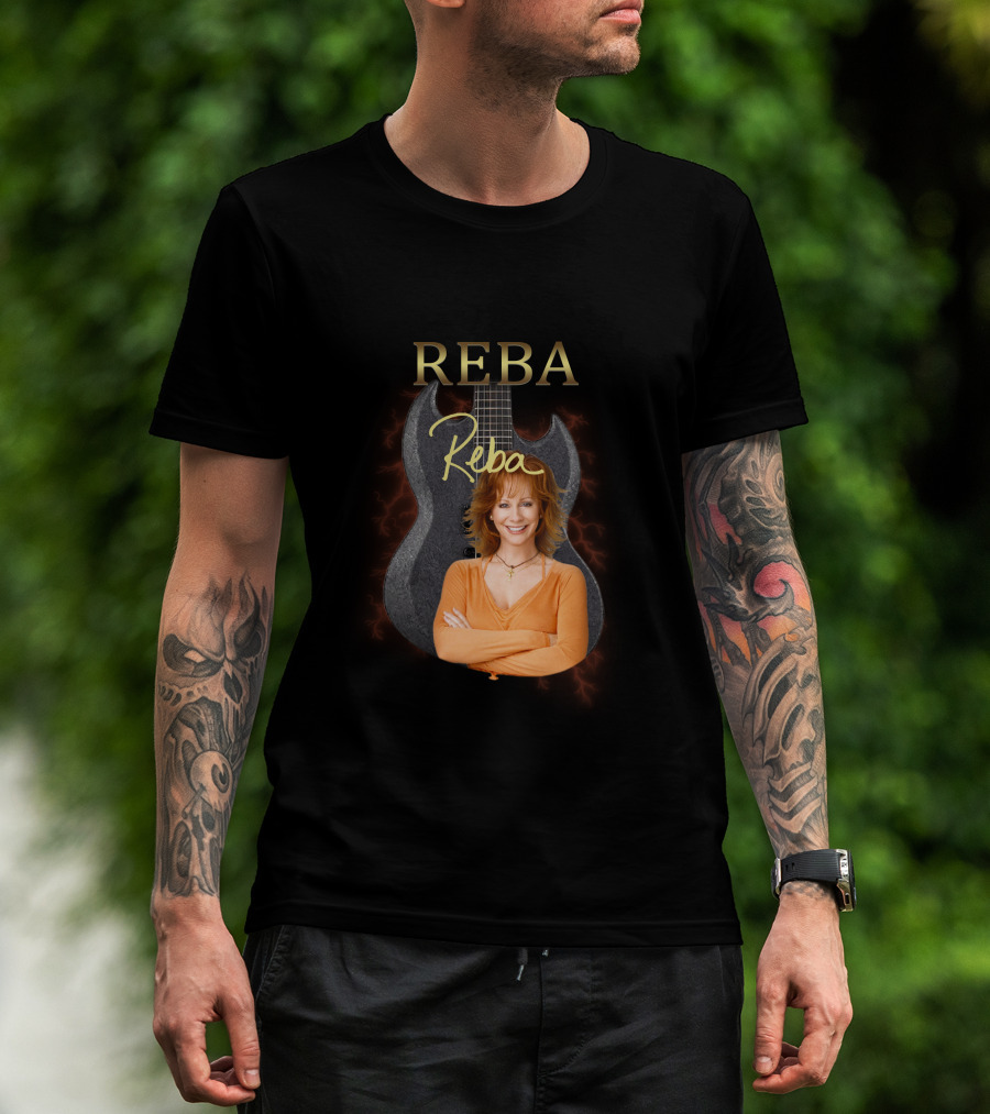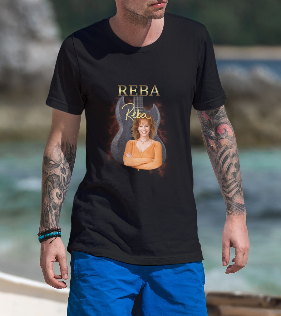 REBA Signature Guitar With Portrait On Black Electric Background T-Shirt