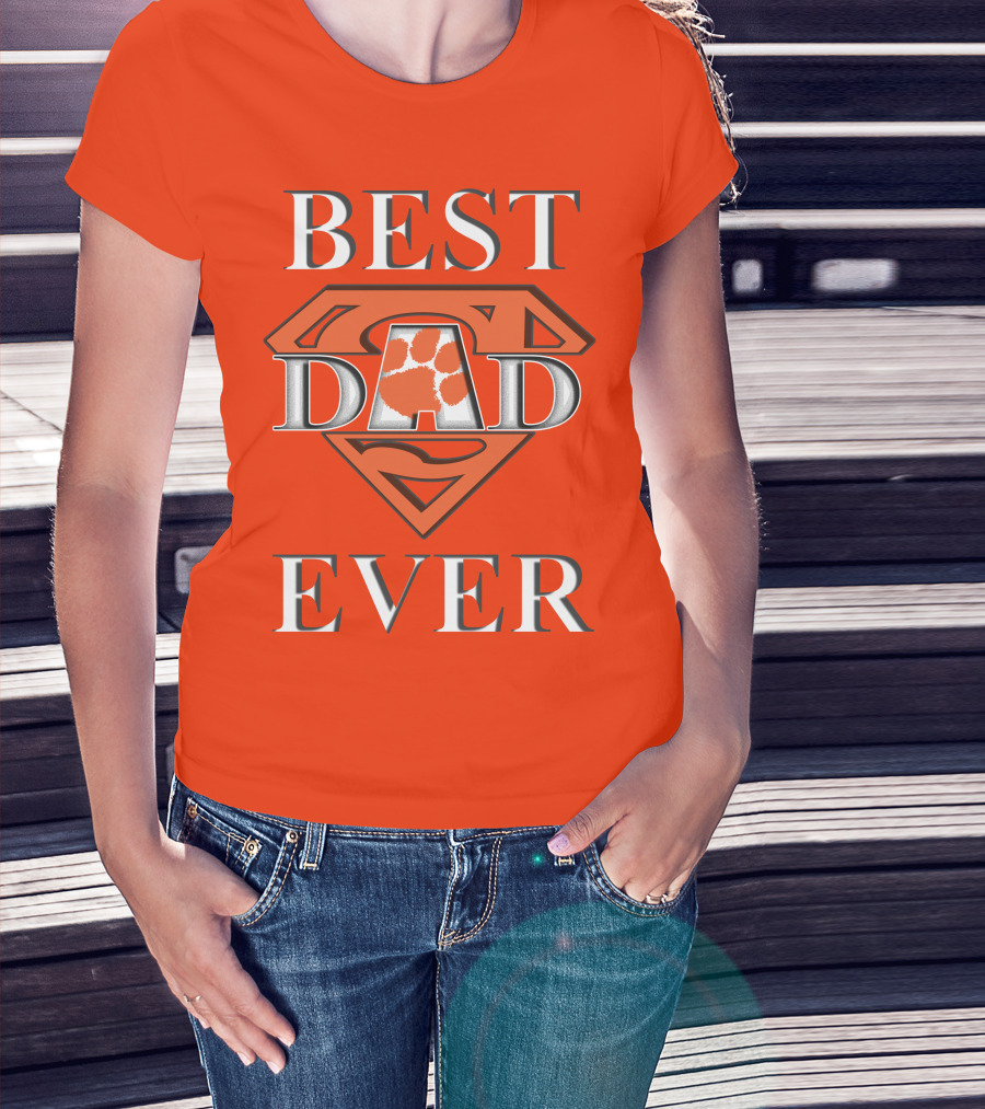 The Best Dad Ever Clemson Tiger Paw Superman T-shirt is designed for everyday wear and a consistent fit. Fabric is pre-shrunk ring-spun cotton with durable stitching. See the size chart below for exact measurements.