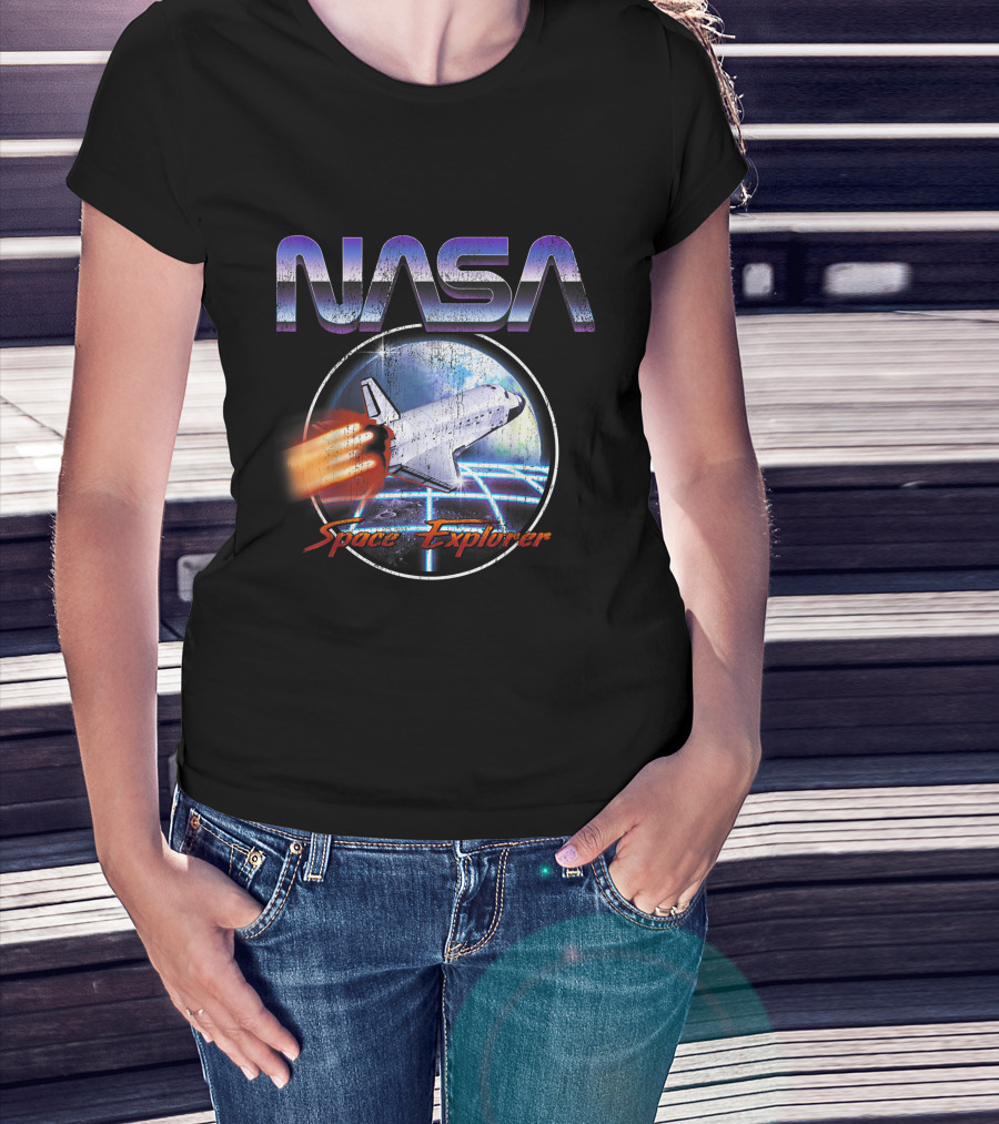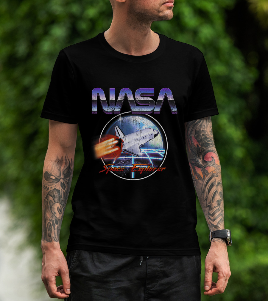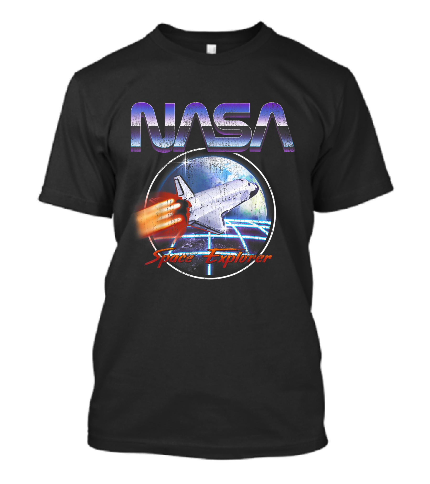 The NASA Space Explorer 80's Neon Chrome Shuttle Retro Grid T-shirt is designed for everyday wear and a consistent fit. Fabric is pre-shrunk ring-spun cotton with durable stitching. See the size chart below for exact measurements.