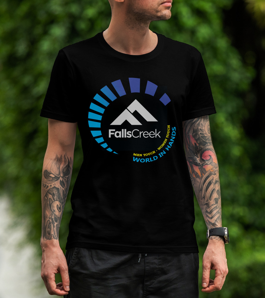 The Falls Creek Men Touch Women Touch World in Hands T-shirt is designed for everyday wear and a consistent fit. Fabric is pre-shrunk ring-spun cotton with durable stitching. See the size chart below for exact measurements.