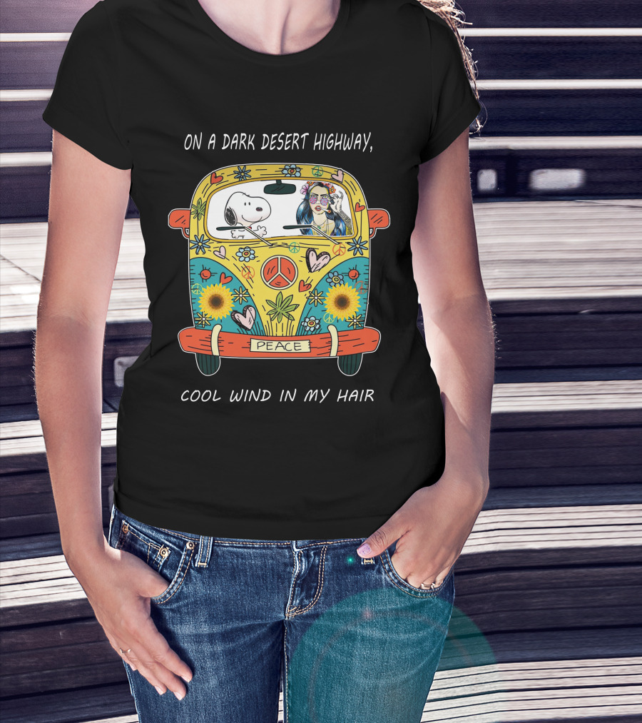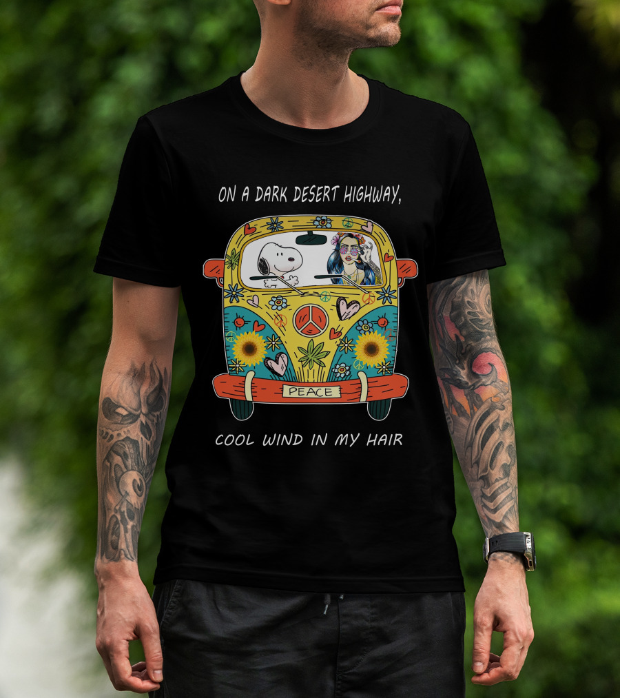 On A Dark Desert Highway Cool Wind In My Hair Peace Bus Hippie Snoopy T-Shirt