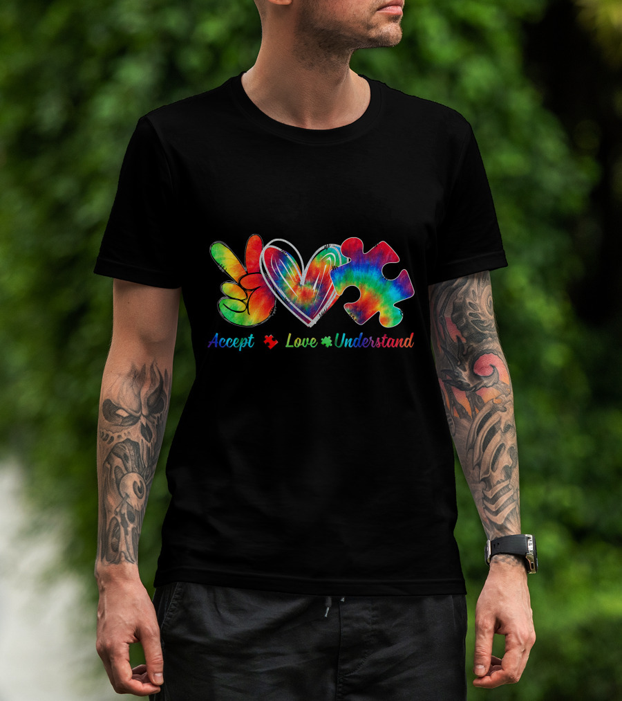 Autism Awareness Accept Understand Love Tie Dye Peace Heart Puzzle T-Shirt