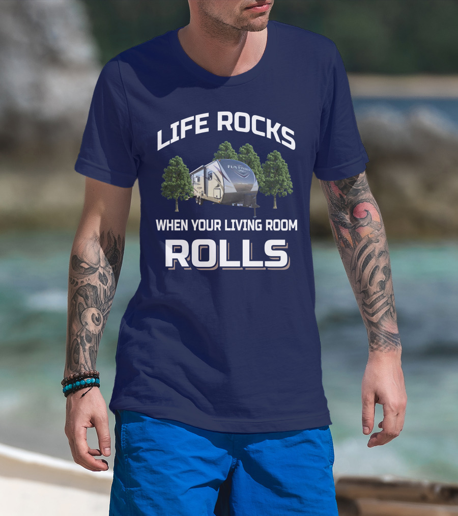 LIFE ROCKS WHEN YOUR LIVING ROOM ROLLS FUN FINDER RV T-Shirt