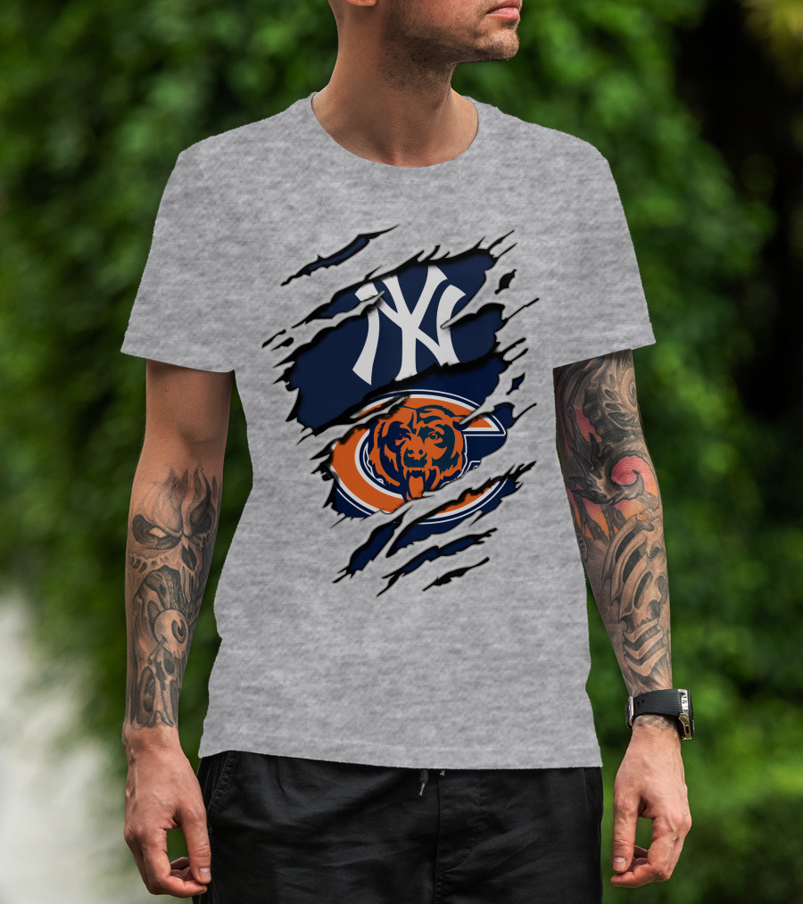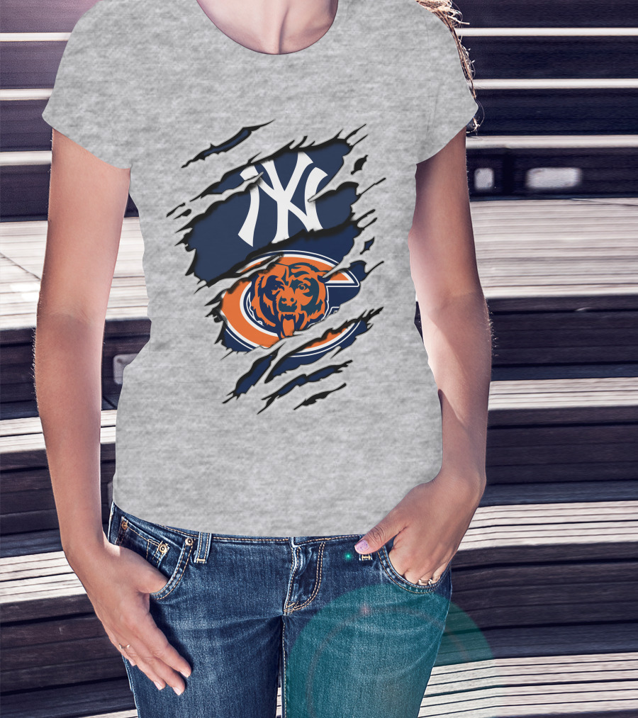 Yankees Logo And Chicago Bears Emblem Combination T-Shirt