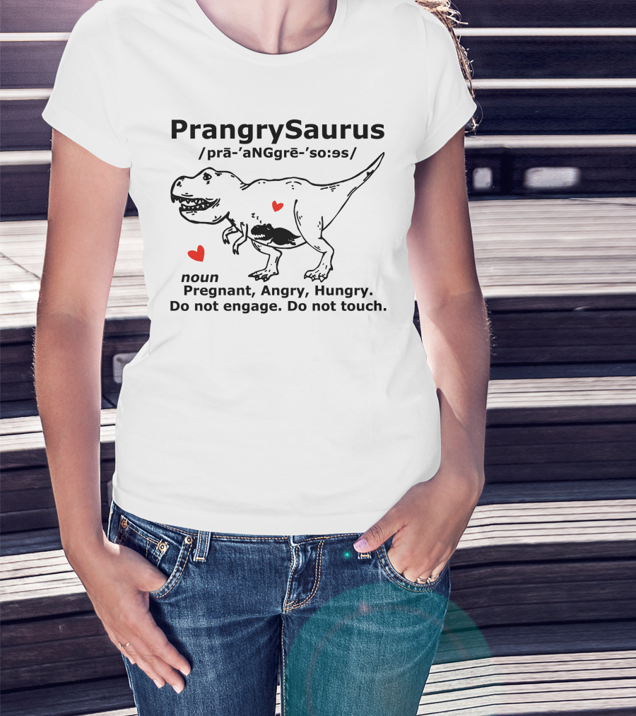 PrangrySaurus Pregnant Angry Hungry Do Not Engage Do Not Touch Dinosaur Humor Definition T-Shirt