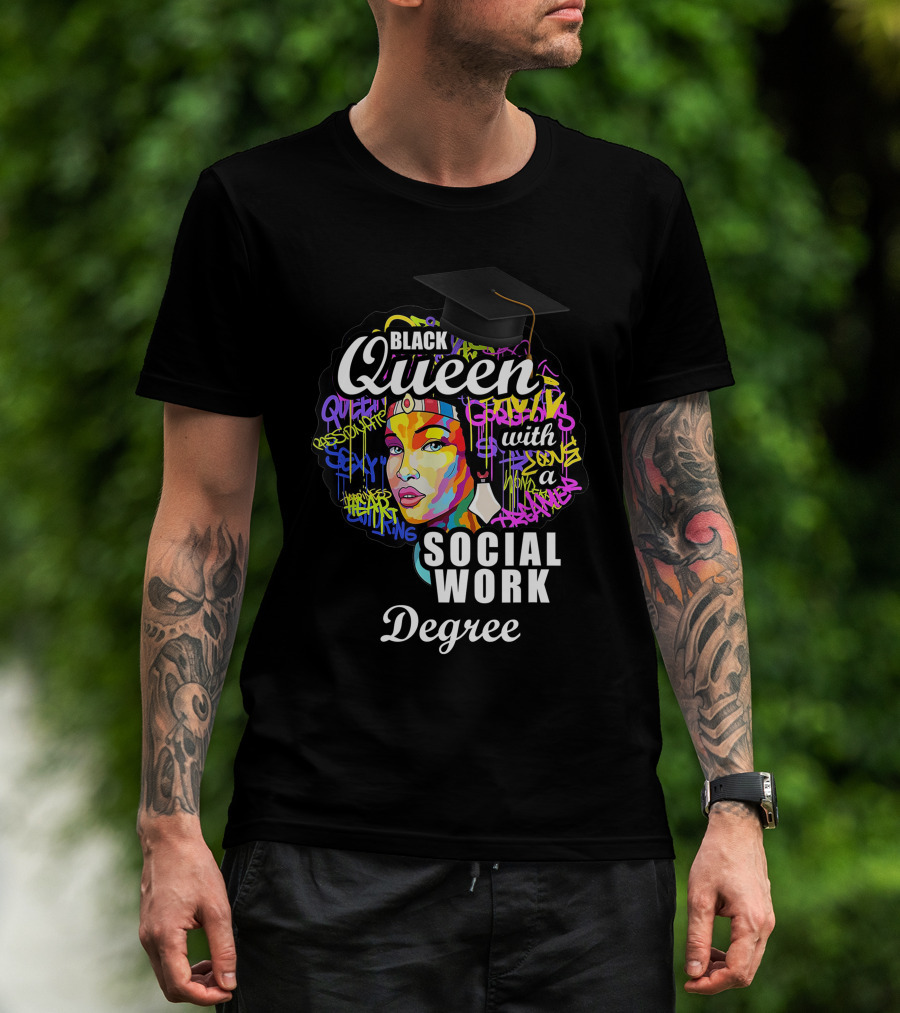 Black Queen Social Work Degree With Graduation Cap And Colorful Abstract T-Shirt