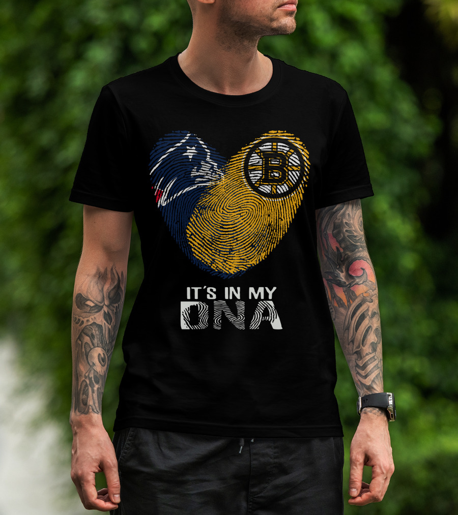It's In My DNA Patriots Bruins Fingerprint Heart T-Shirt