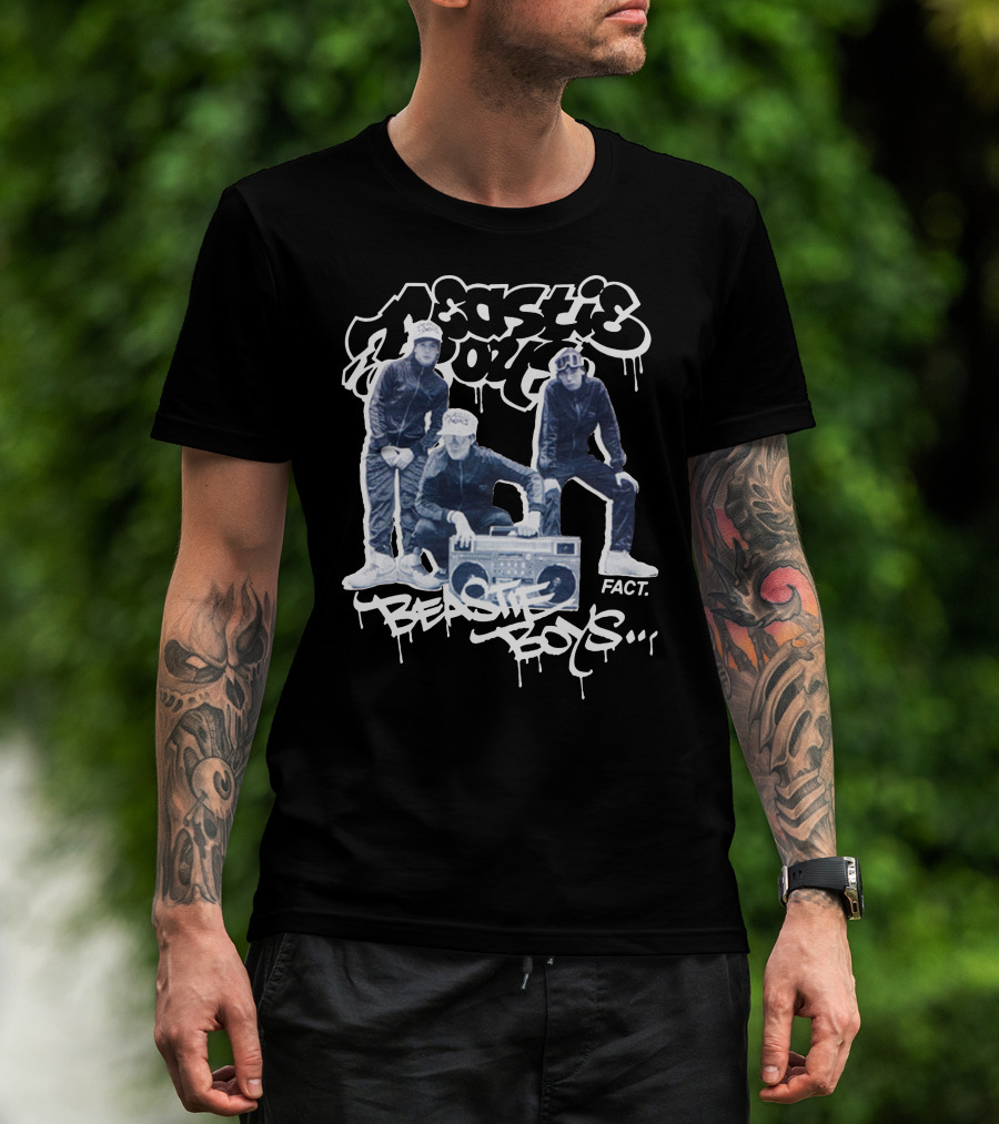 The Beastie Boys Fact Boombox Trio T-shirt is designed for everyday wear and a consistent fit. Fabric is pre-shrunk ring-spun cotton with durable stitching. See the size chart below for exact measurements.