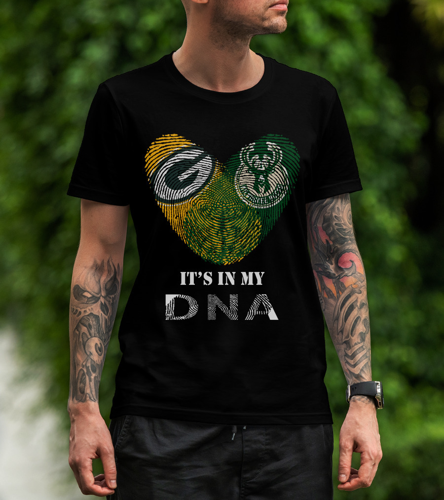 Packers Bucks Logos Fingerprint It's In My DNA T-Shirt