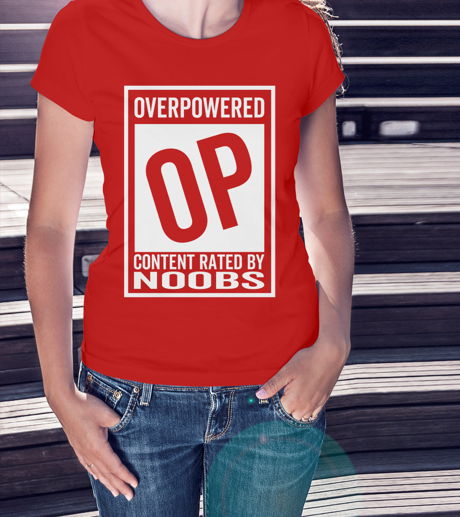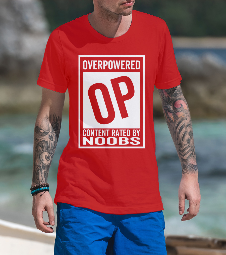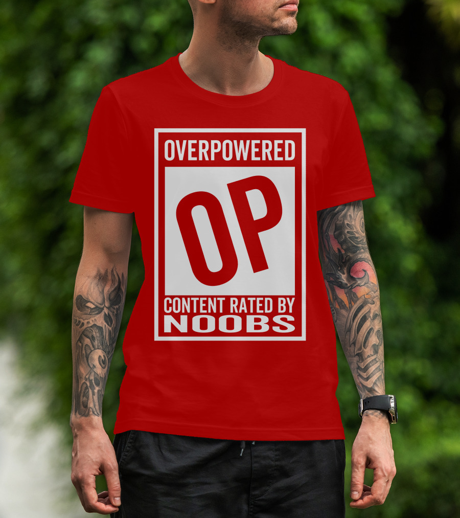 The Overpowered Content Rated OP By Noobs T-shirt is designed for everyday wear and a consistent fit. Fabric is pre-shrunk ring-spun cotton with durable stitching. See the size chart below for exact measurements.