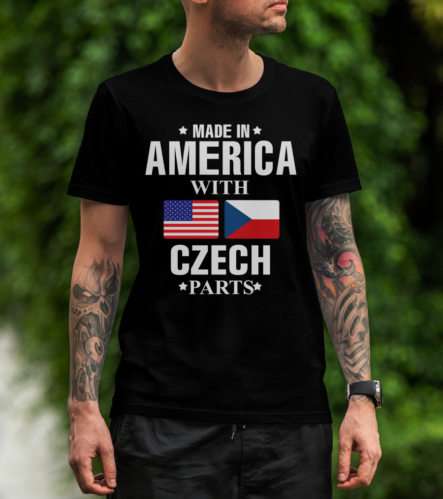 MADE IN AMERICA WITH CZECH PARTS USA CZECHIA FLAGS T-Shirt