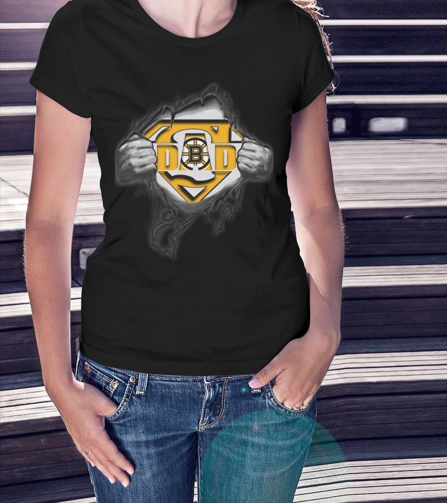 Boston Bruins Super Dad Logo With Shield And Hands T-Shirt