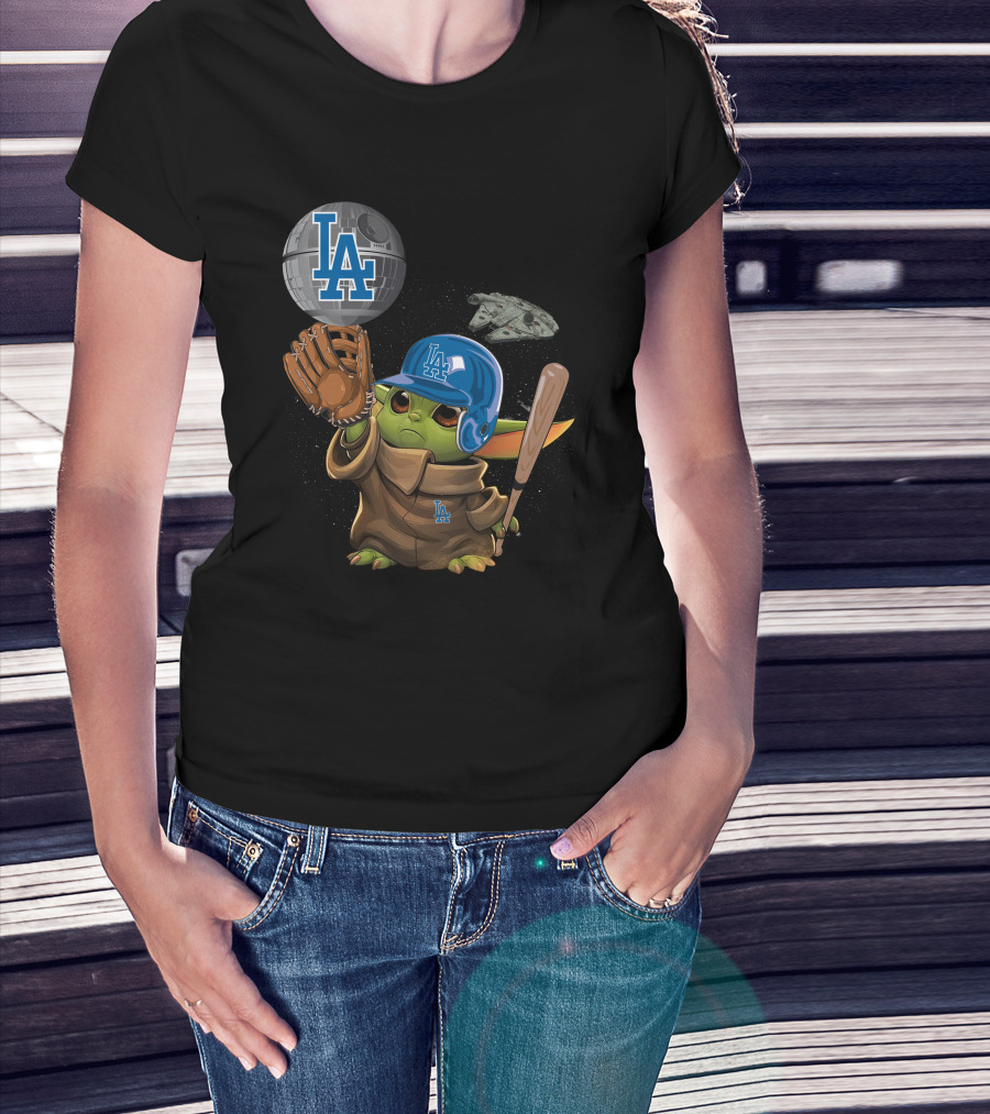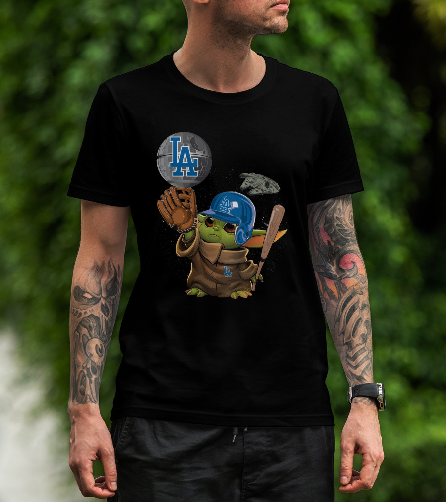 LA Baby Yoda Star War Baseball Dodgers Millennium Falcon T-Shirt