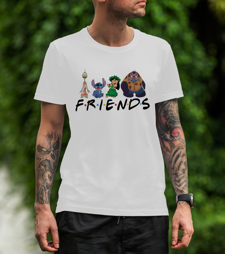 The Lilo and Stitch Friends Characters T-shirt is designed for everyday wear and a consistent fit. Fabric is pre-shrunk ring-spun cotton with durable stitching. See the size chart below for exact measurements.