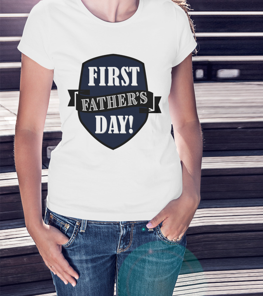 First Father's Day Shield Style Badge T-Shirt