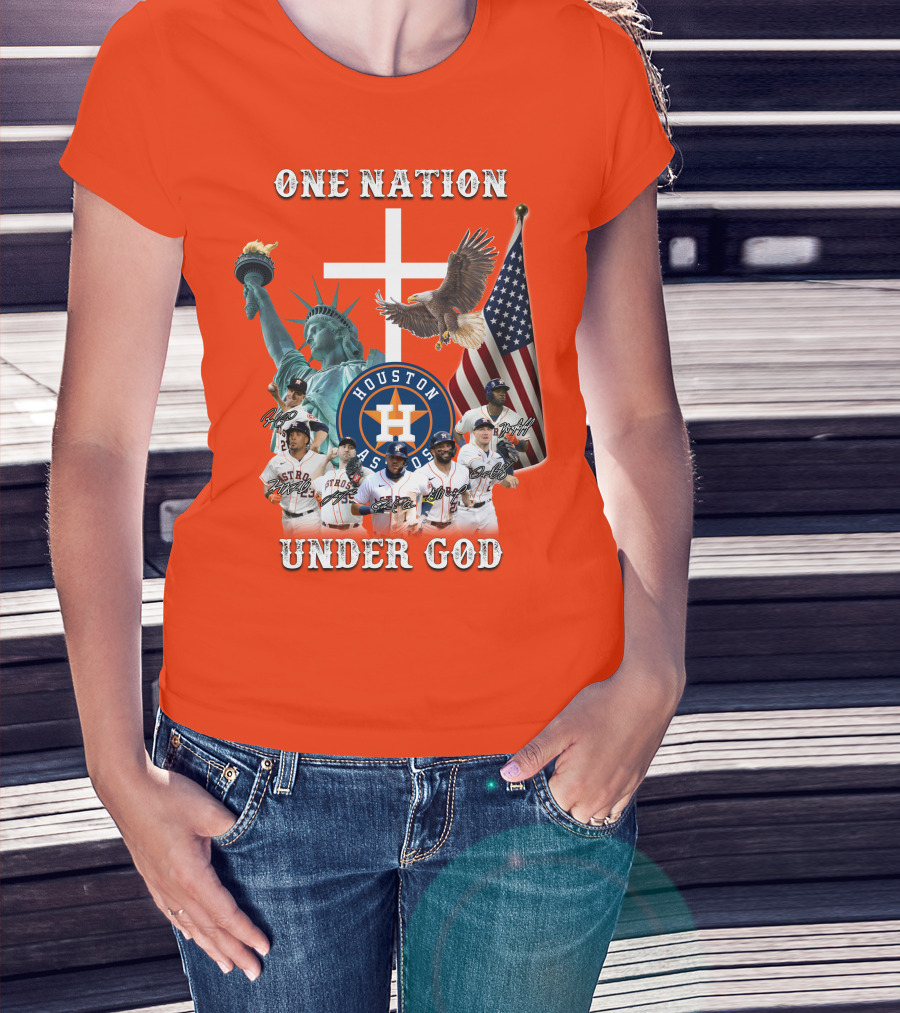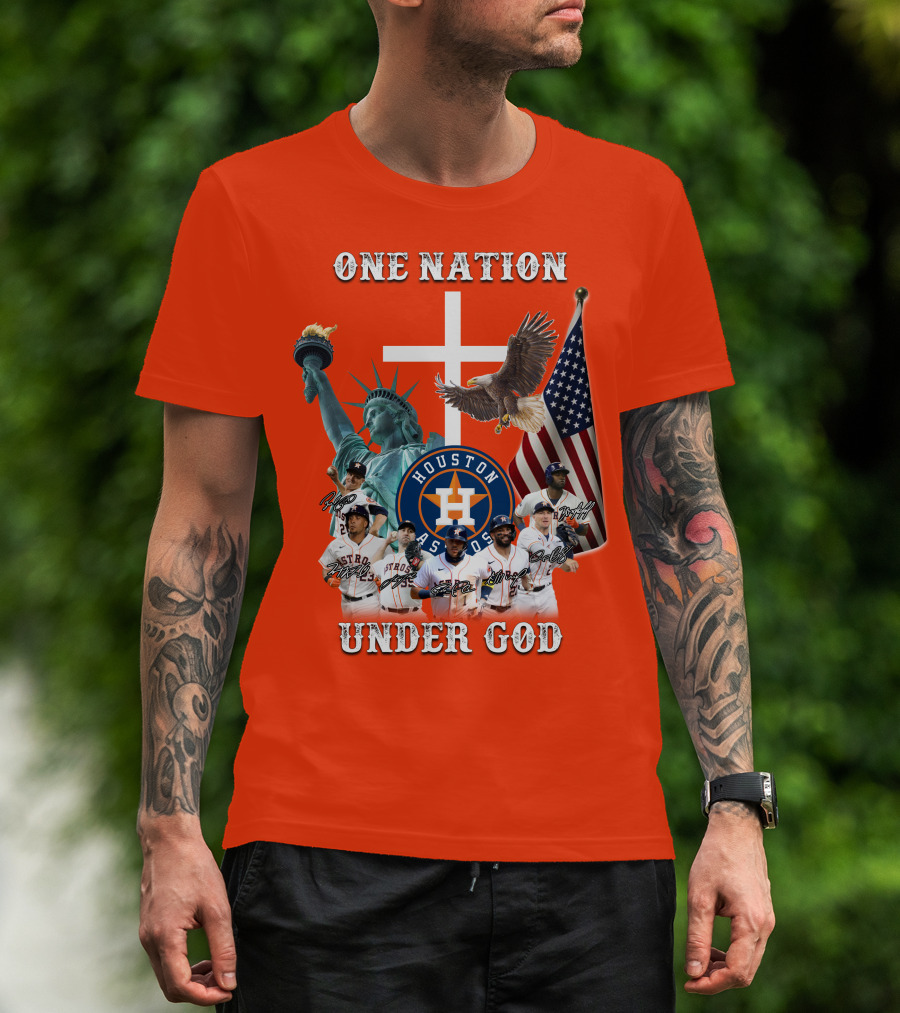 One Nation Under God Houston Astros Statue Of Liberty American Flag T-Shirt