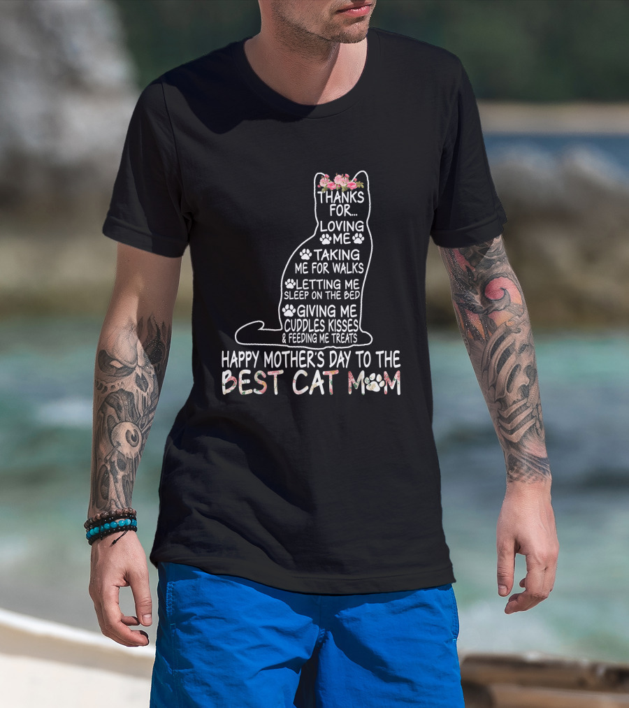 Happy Mother's Day Thanks For Loving Me Best Cat Mom Letting Me Sleep On The Bed T-Shirt