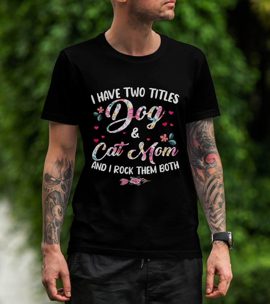 I Have Two Titles Dog And Cat Mom Floral Design And I Rock Them Both T-Shirt