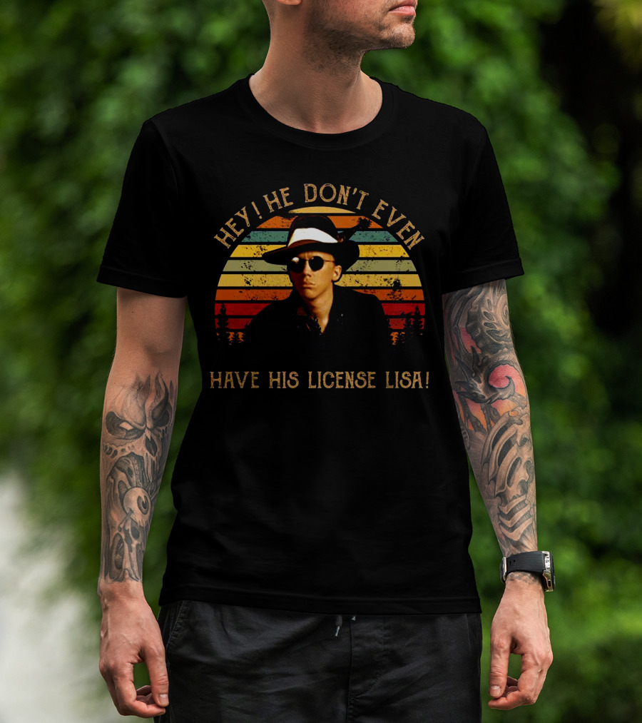 Hey He Don't Even Have His License Lisa Retro Man In Fedora And Shades T-Shirt
