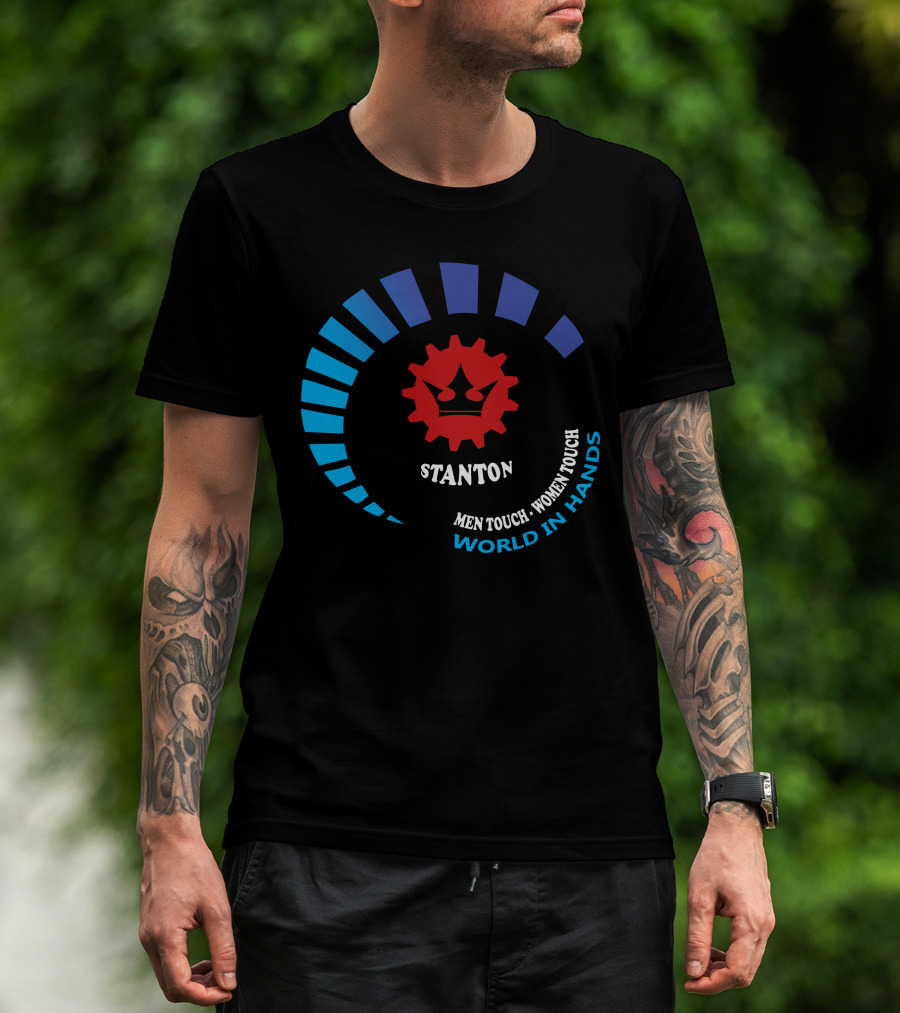 The STANTON Men Touch Women Touch World In Hands T-shirt is designed for everyday wear and a consistent fit. Fabric is pre-shrunk ring-spun cotton with durable stitching. See the size chart below for exact measurements.