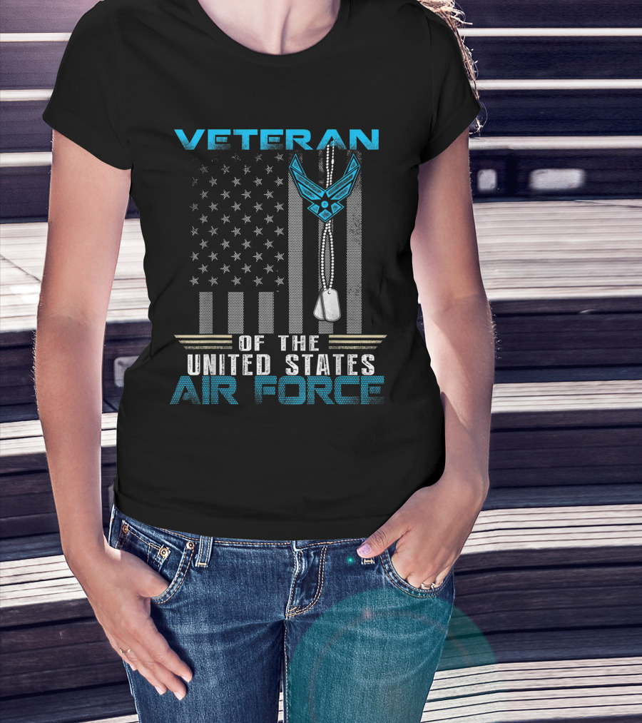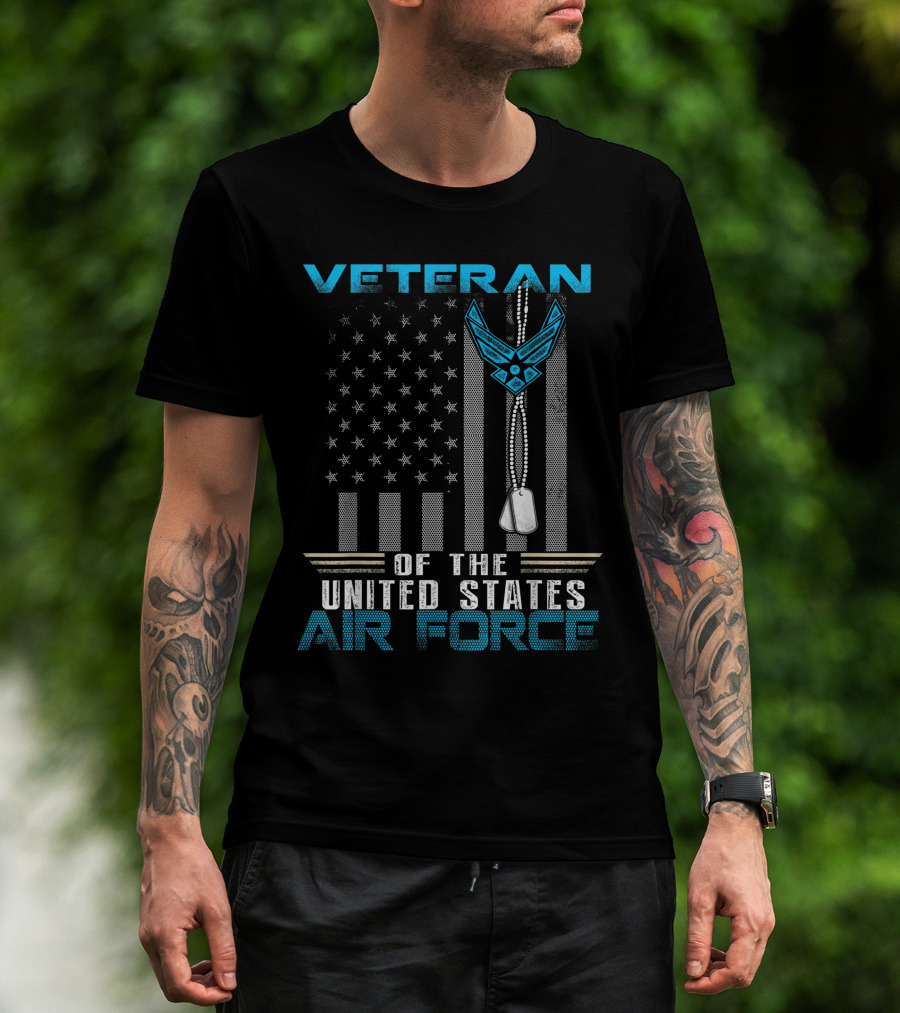 Veteran United States Air Force With Dog Tags And Flag T-Shirt