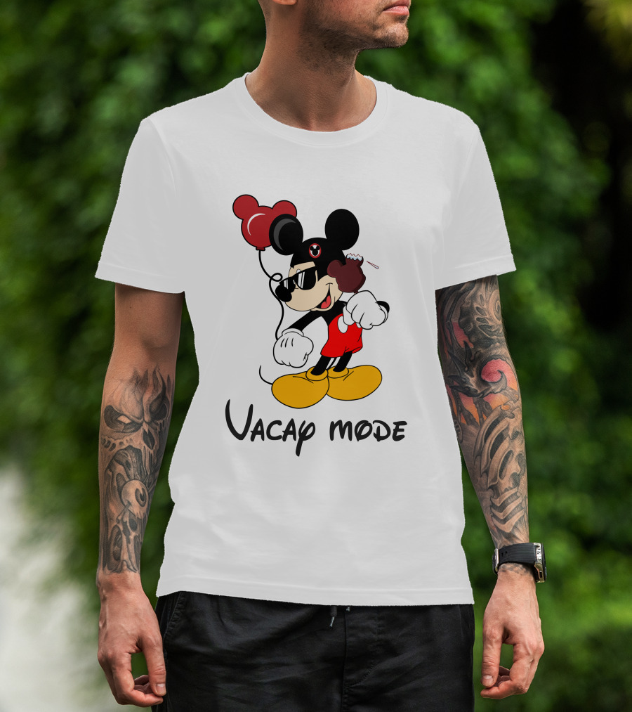 The Vacay Mode Mic Mouse Key T-shirt is designed for everyday wear and a consistent fit. Fabric is pre-shrunk ring-spun cotton with durable stitching. See the size chart below for exact measurements.