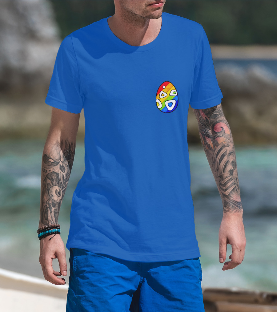The Pride Rainbow Colorful Good Egg T-shirt is designed for everyday wear and a consistent fit. Fabric is pre-shrunk ring-spun cotton with durable stitching. See the size chart below for exact measurements.