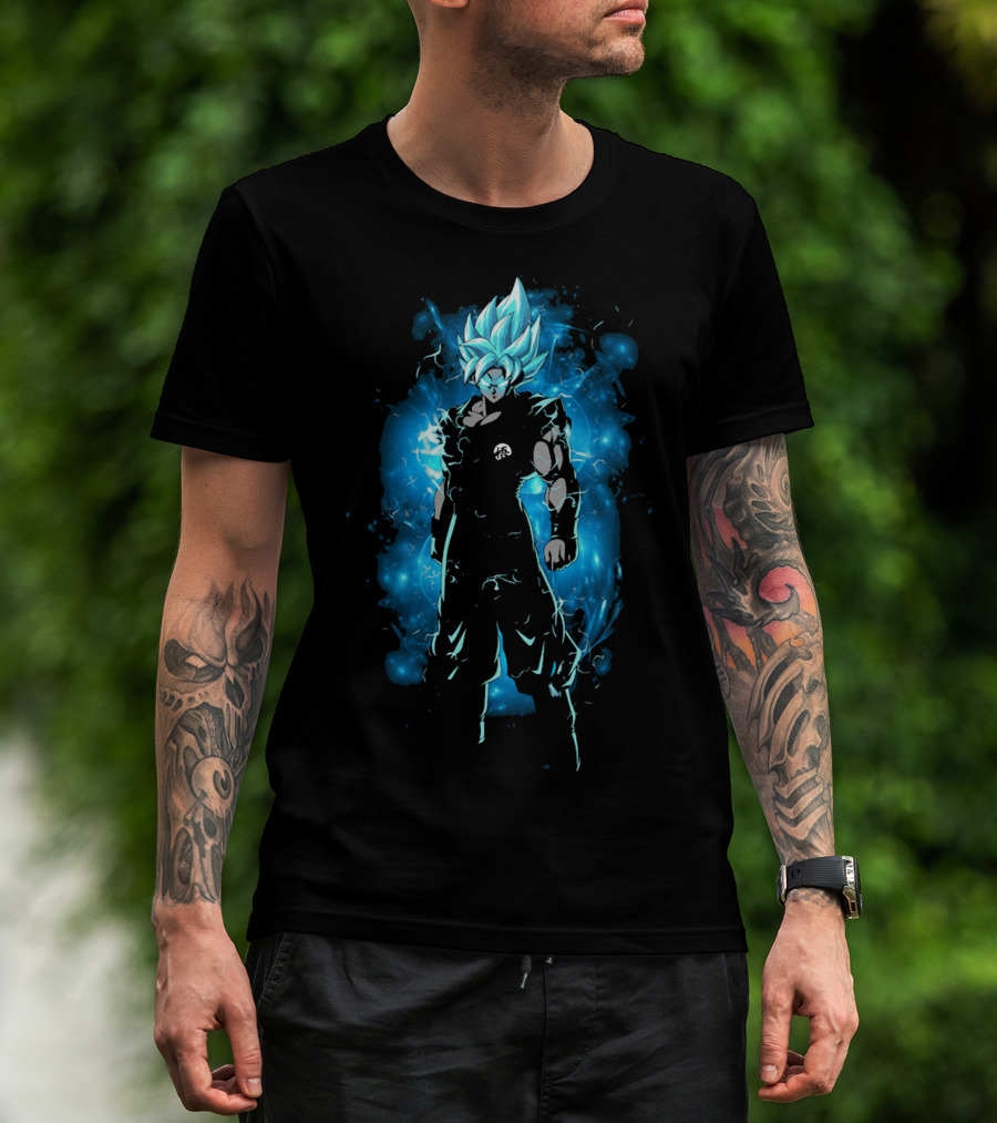Legendary Blue Aura Warrior With Electric Hair And Black Suit T-Shirt