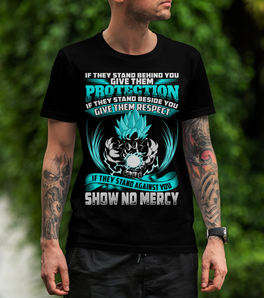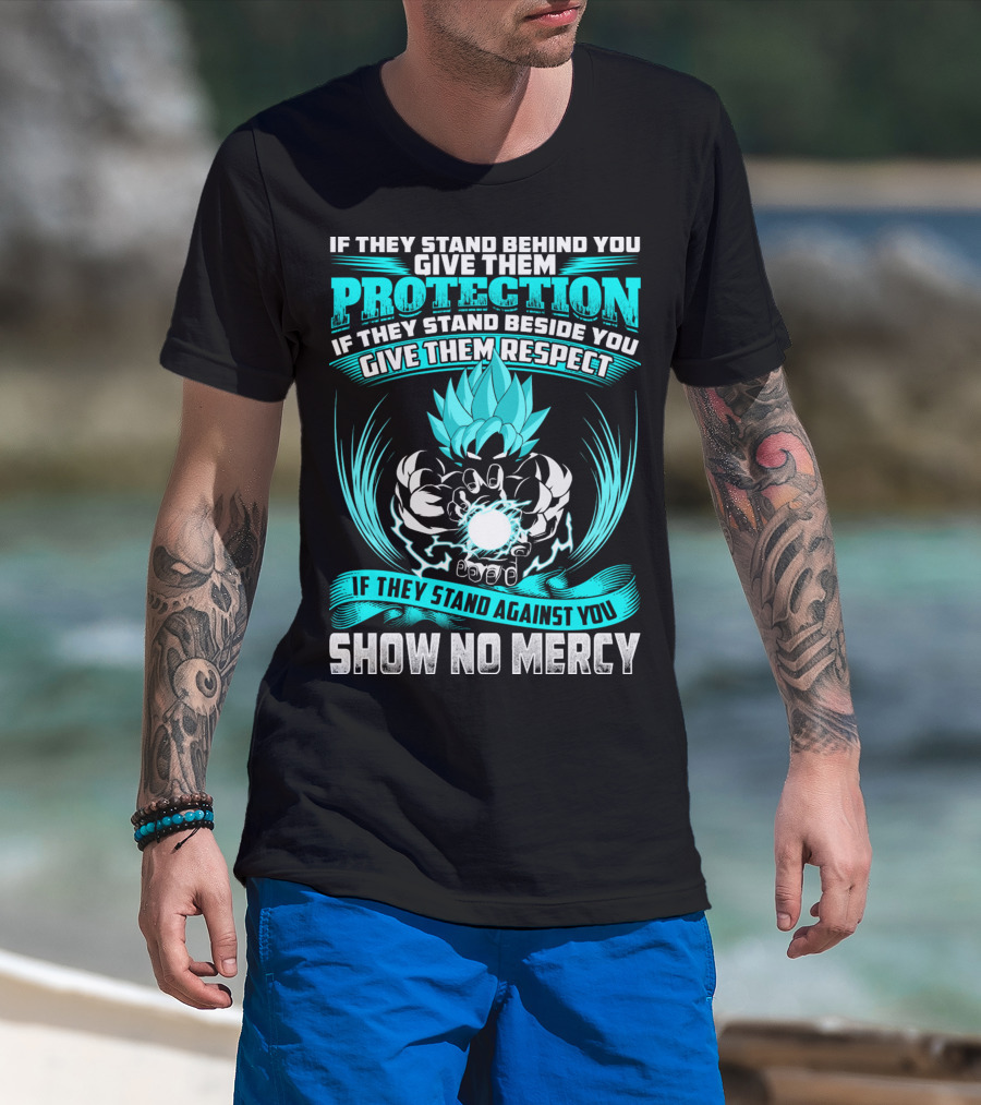 If They Stand Behind You Give Them Protection If They Stand Beside You Give Them Respect If They Stand Against You Show No Mercy Super Saiyant Blue T-Shirt