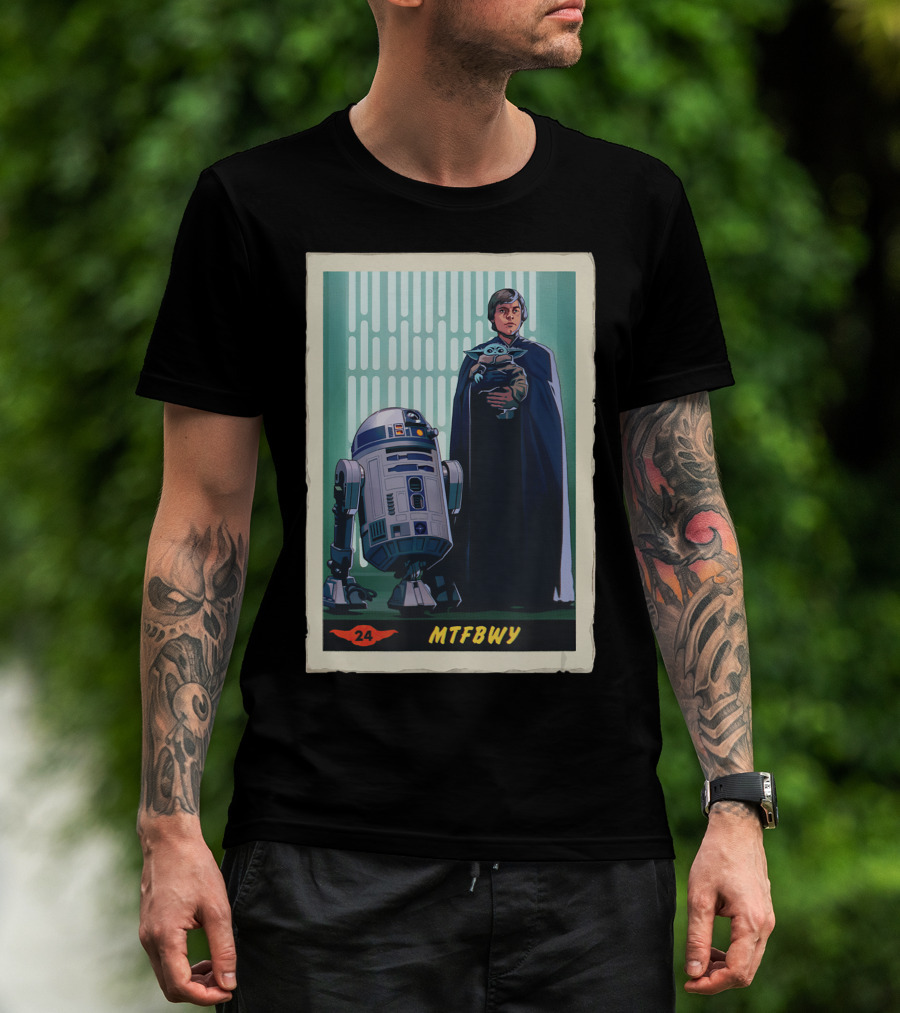 The Star Wars The Mandalorian Skywalker Begins MTFBWY Trading Card 24 T-shirt is designed for everyday wear and a consistent fit. Fabric is pre-shrunk ring-spun cotton with durable stitching. See the size chart below for exact measurements.