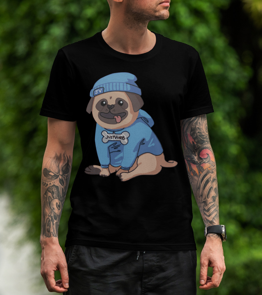 The Justvurb JV Pug Dog in Blue Hoodie and Beanie T-shirt is designed for everyday wear and a consistent fit. Fabric is pre-shrunk ring-spun cotton with durable stitching. See the size chart below for exact measurements.