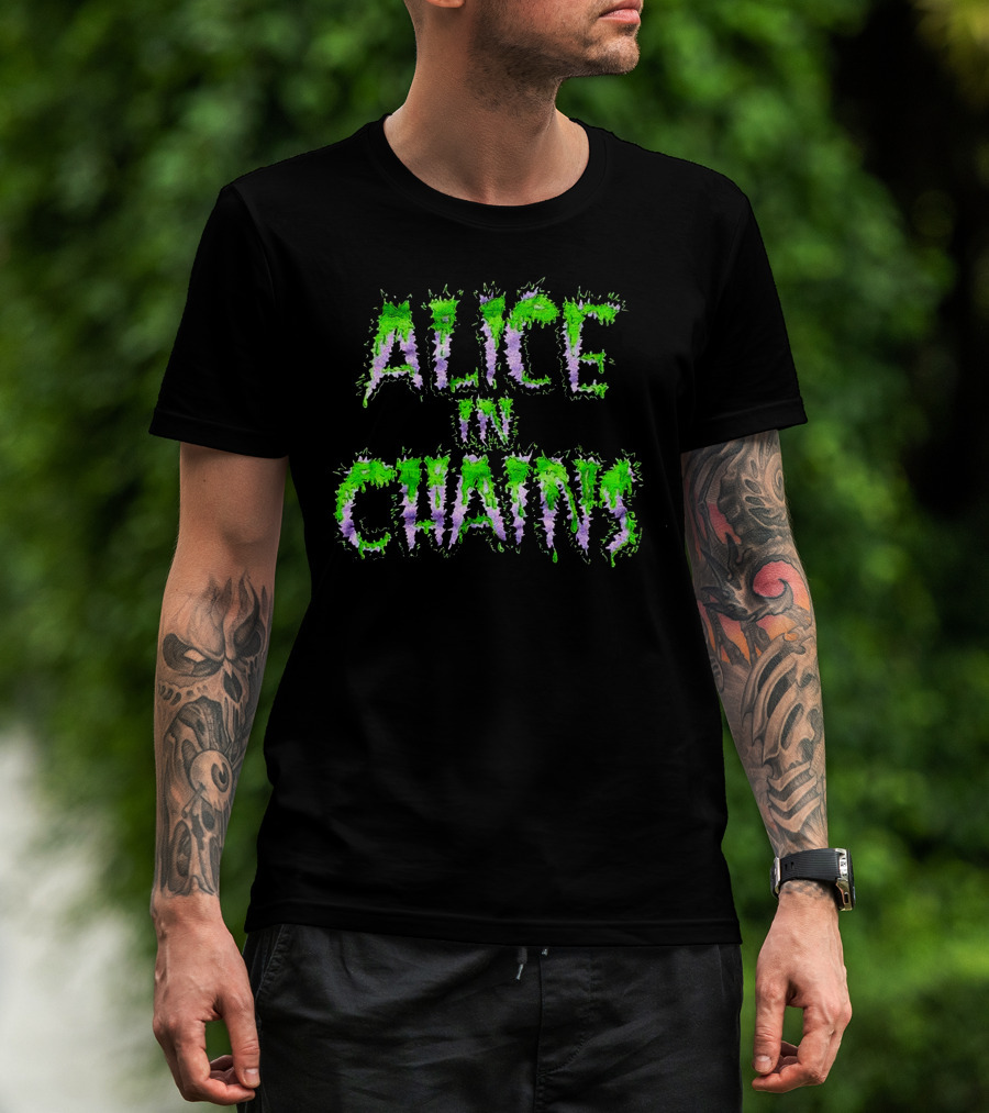 Alice In Chains Grunge Psychedelic Green And Purple Text T-Shirt