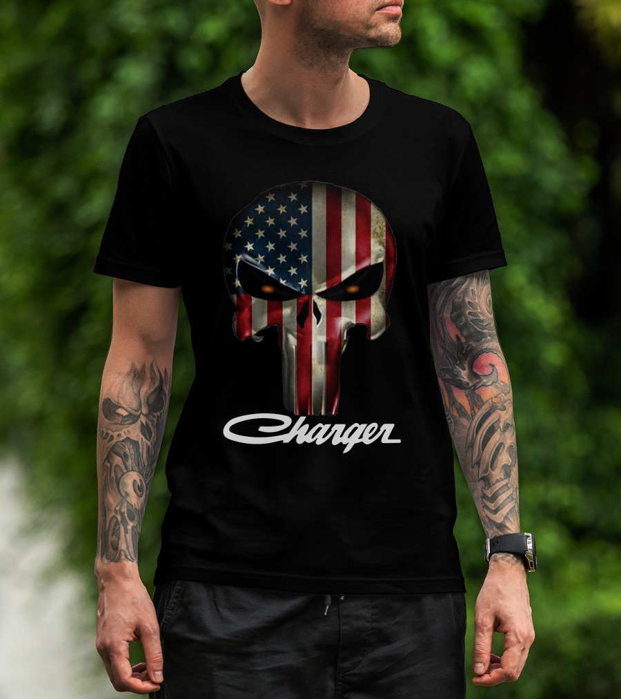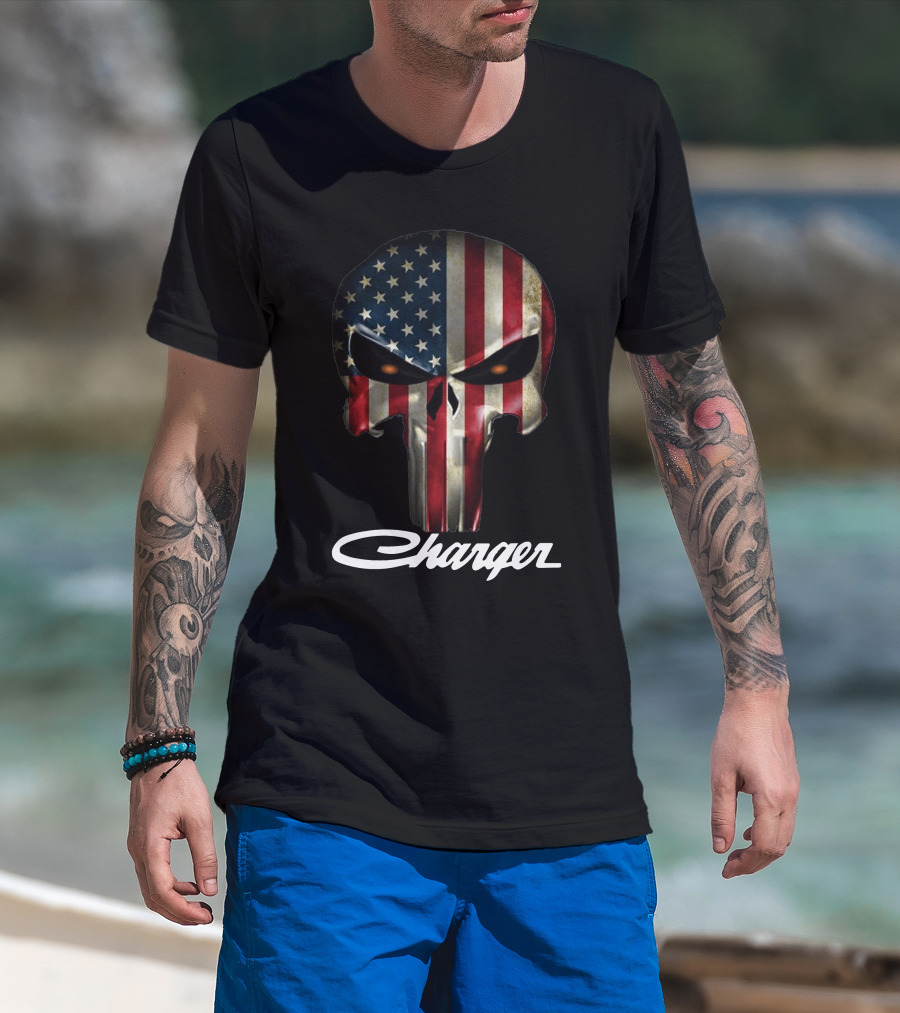American Flag Punisher Skull Charger T-Shirt