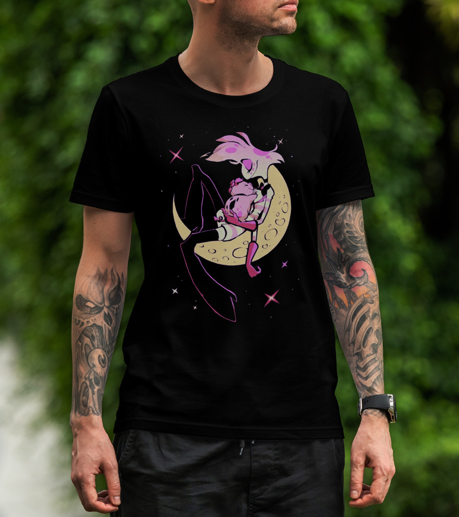 The Vivziepop Moon Character Pink Starry Night Merch T-shirt is designed for everyday wear and a consistent fit. Fabric is pre-shrunk ring-spun cotton with durable stitching. See the size chart below for exact measurements.