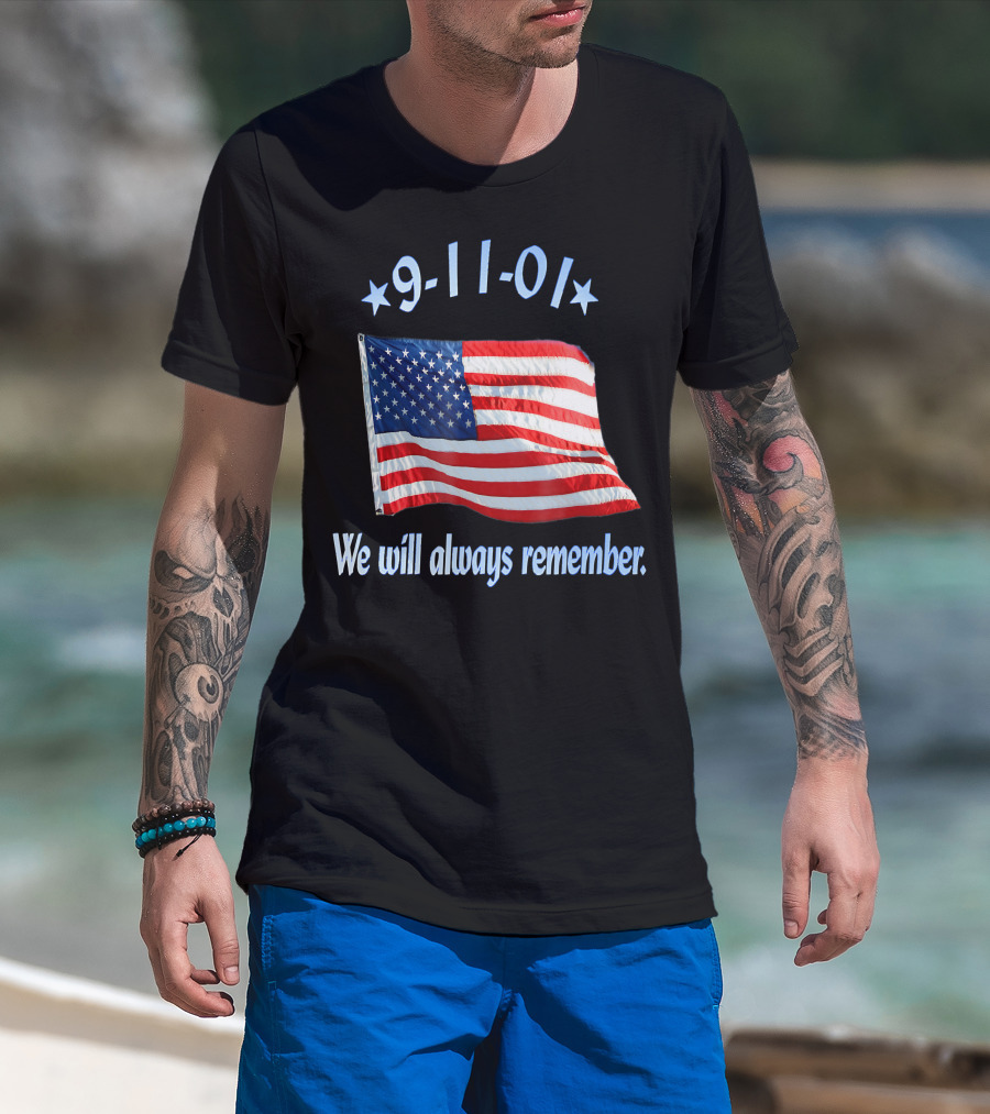 9-11-01 American Flag We Will Always Remember T-Shirt