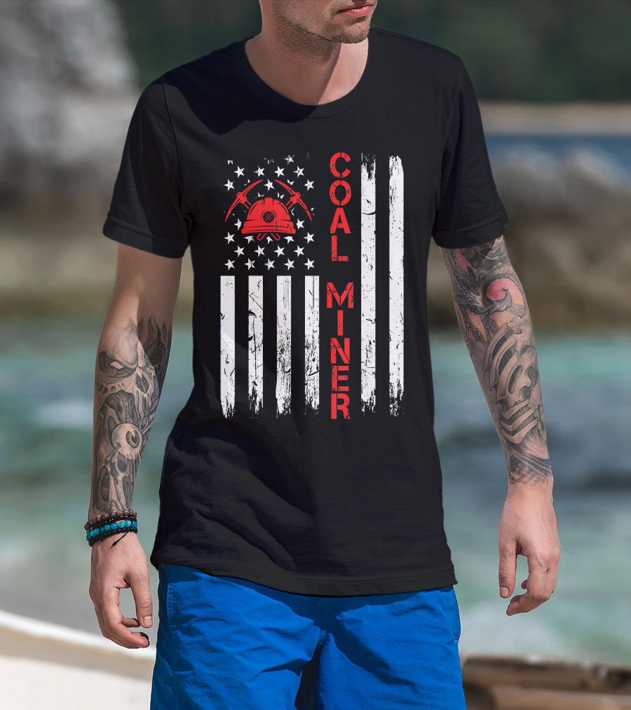 Coal Miner American USA Flag Tough Worker T-Shirt