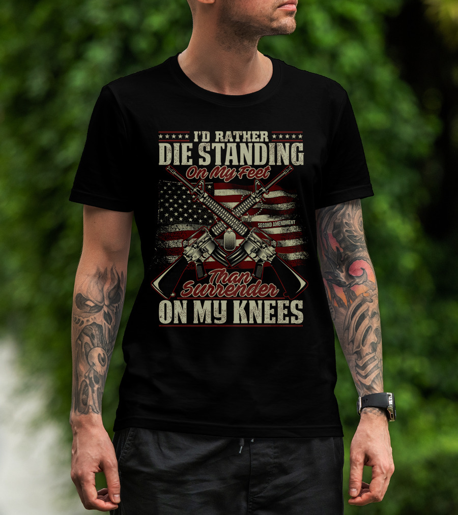 I'D RATHER DIE STANDING ON MY FEET THAN SURRENDER ON MY KNEES SECOND AMENDMENT T-Shirt