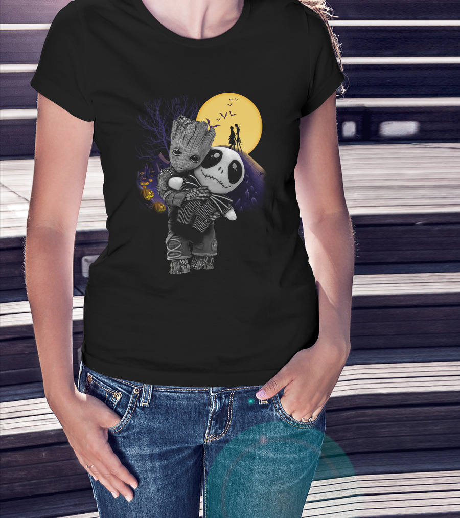 Groot Hug Jack Skellington Halloween Night T-Shirt