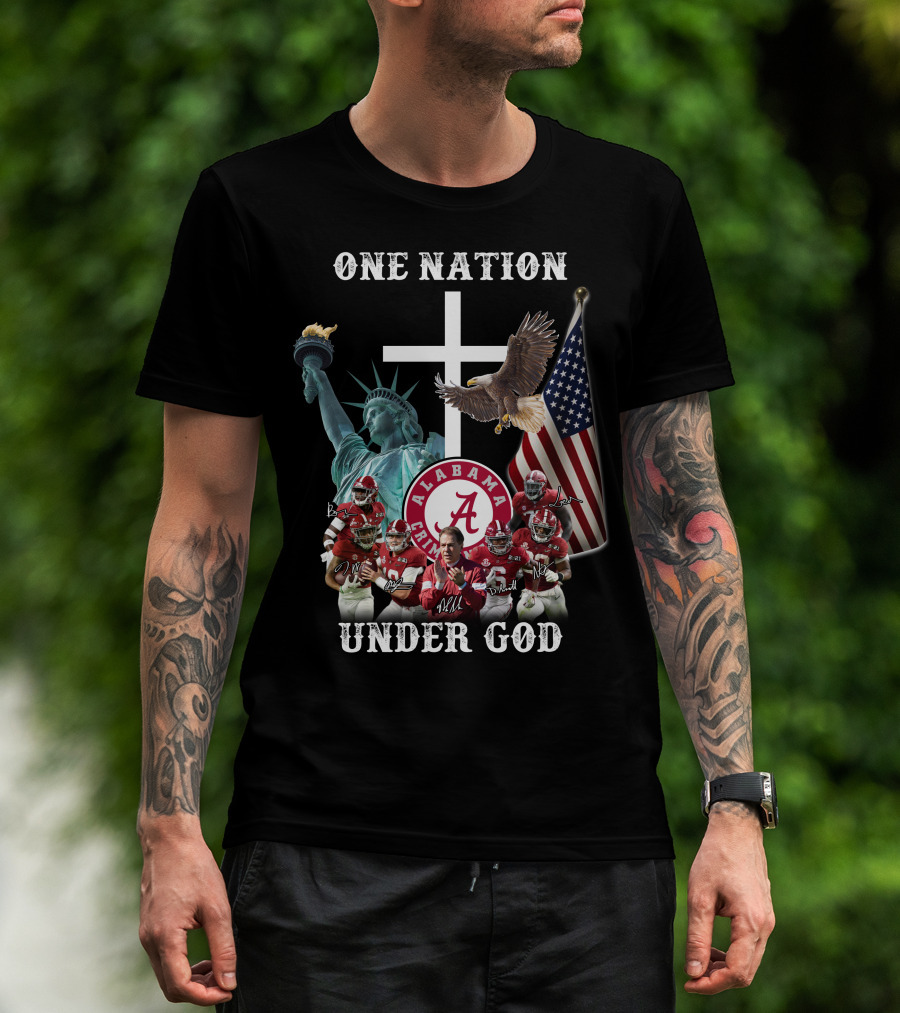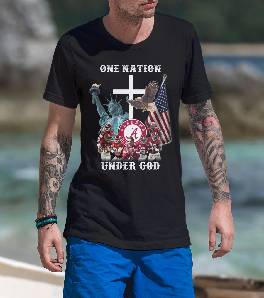 One Nation Under God Alabama Crimson Tide Football Statue Of Liberty American Flag Eagle T-Shirt