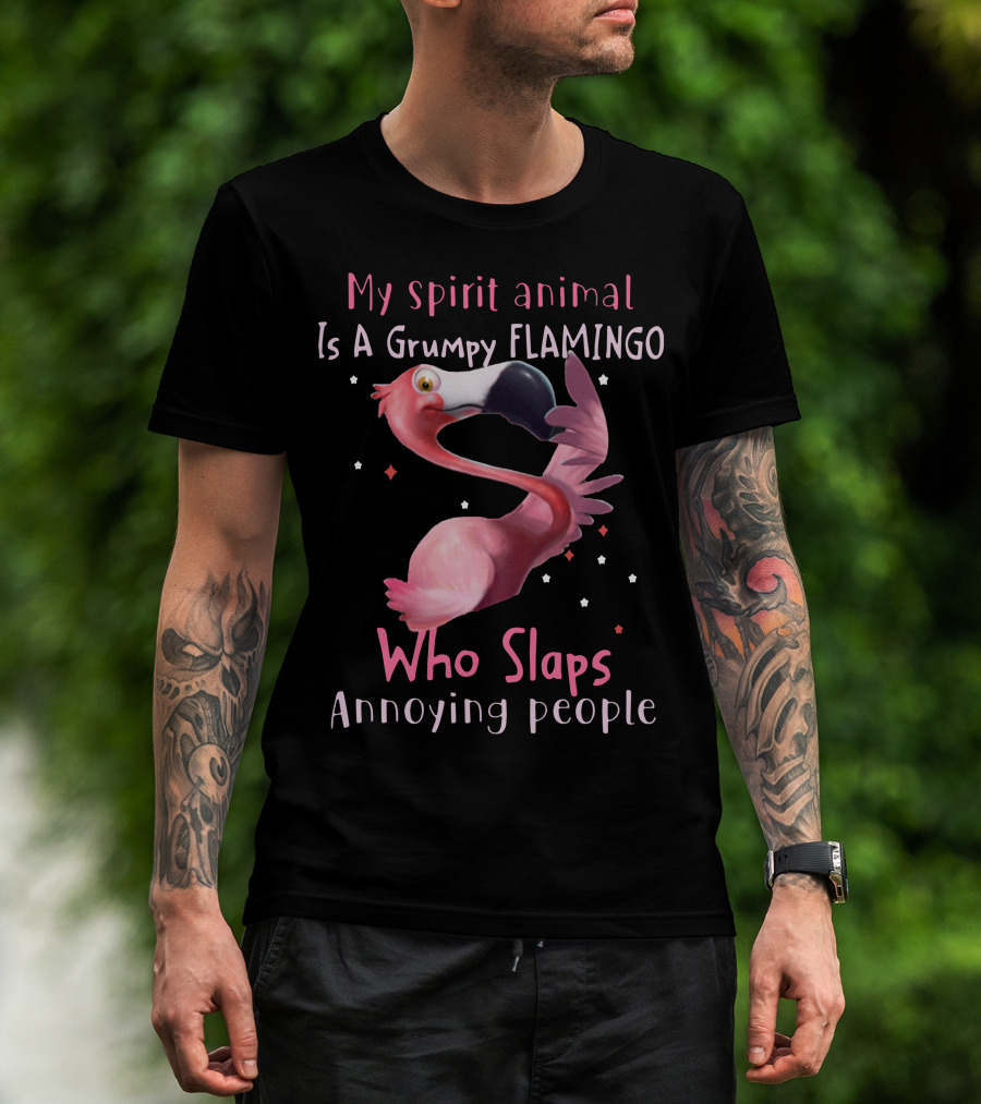 My Spirit Animal Is A Grumpy Flamingo Who Slaps Annoying People T-Shirt