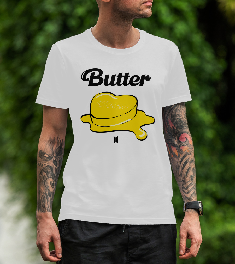 The BTS Butter Melting Heart T-shirt is designed for everyday wear and a consistent fit. Fabric is pre-shrunk ring-spun cotton with durable stitching. See the size chart below for exact measurements.