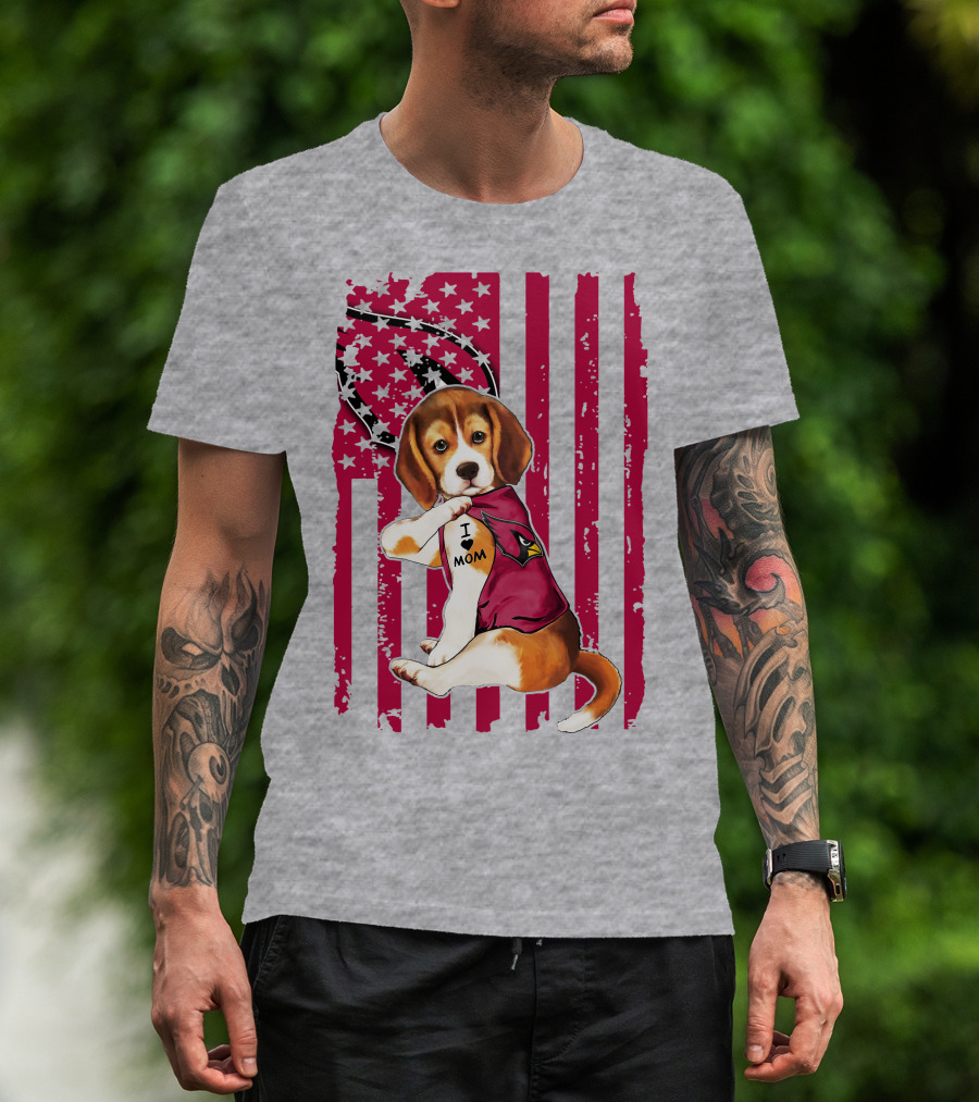 Beagle With Arizona Cardinals Tattoo And American Flag Background T-Shirt
