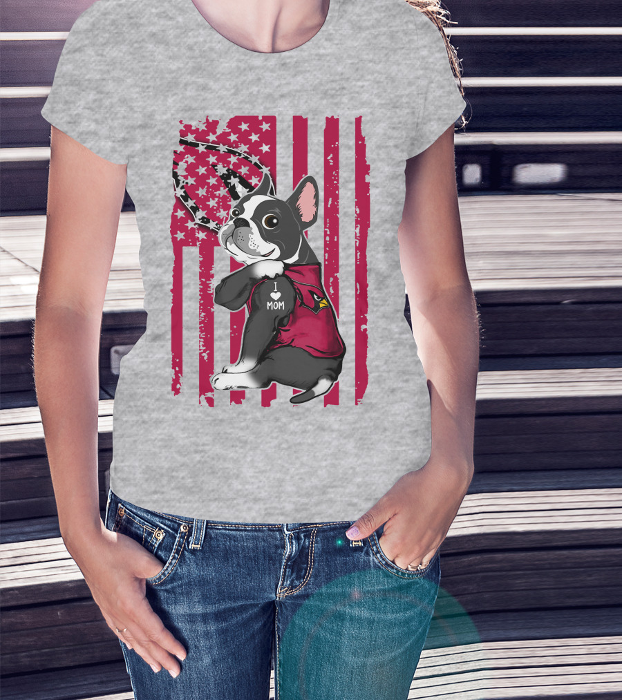 Boston Terrier I Love Mom Arizona Cardinals American Flag T-Shirt