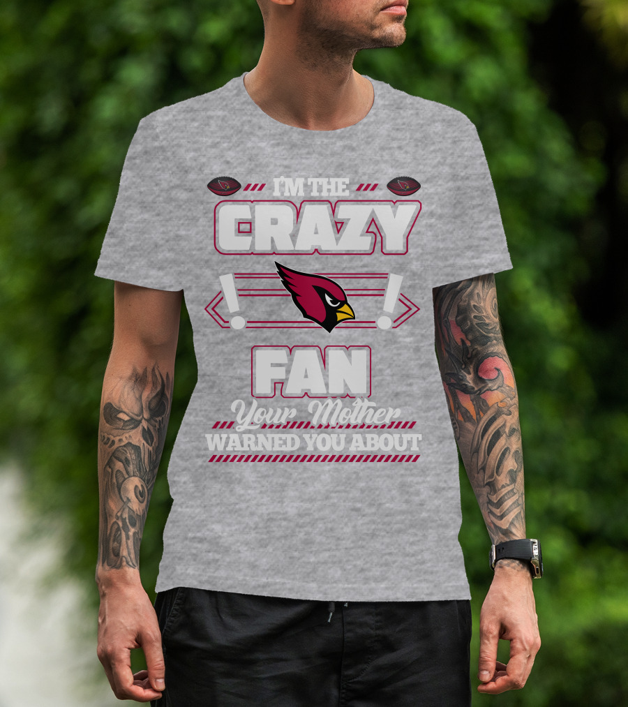The I'm the Crazy Fan Your Mother Warned You About Arizona Cardinals T-shirt is designed for everyday wear and a consistent fit. Fabric is pre-shrunk ring-spun cotton with durable stitching. See the size chart below for exact measurements.