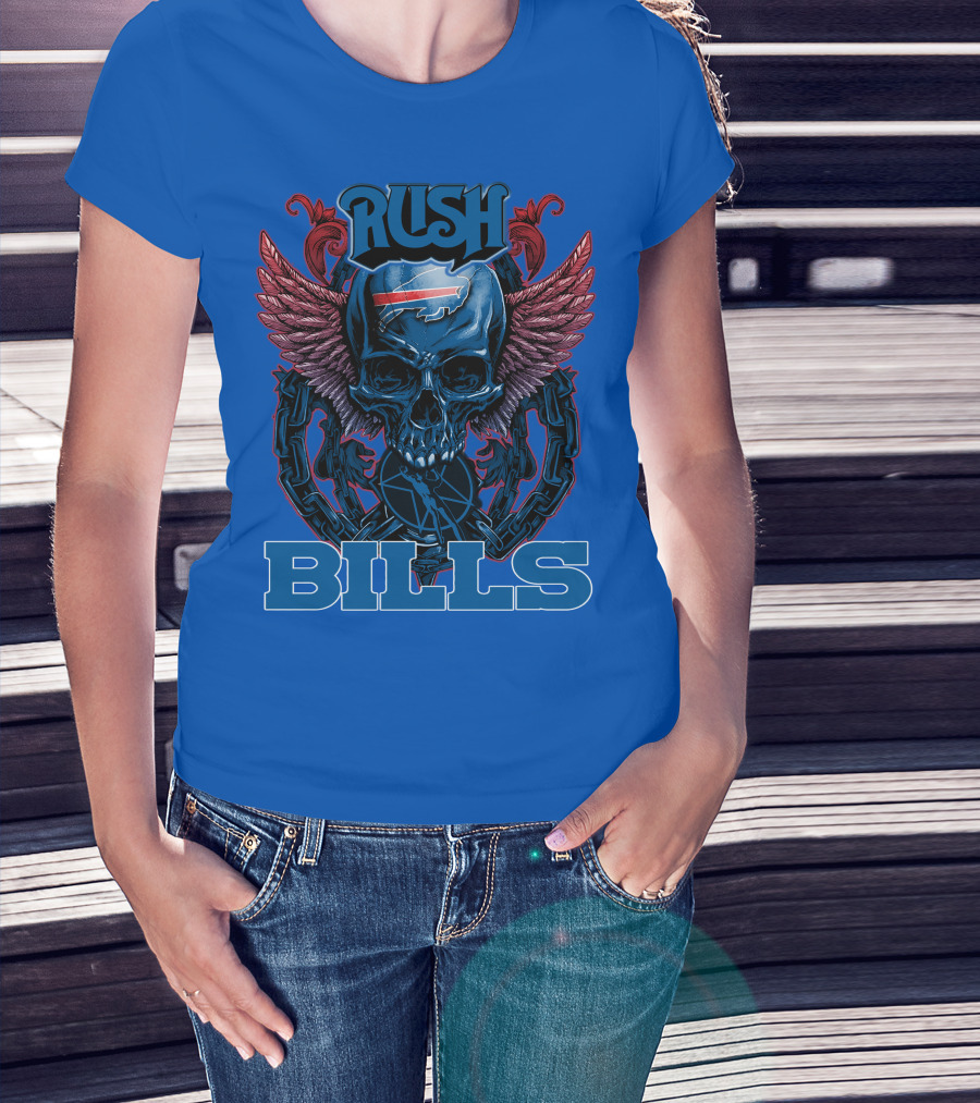 Rush Buffalo Bills Skull With Wings And Chains T-Shirt