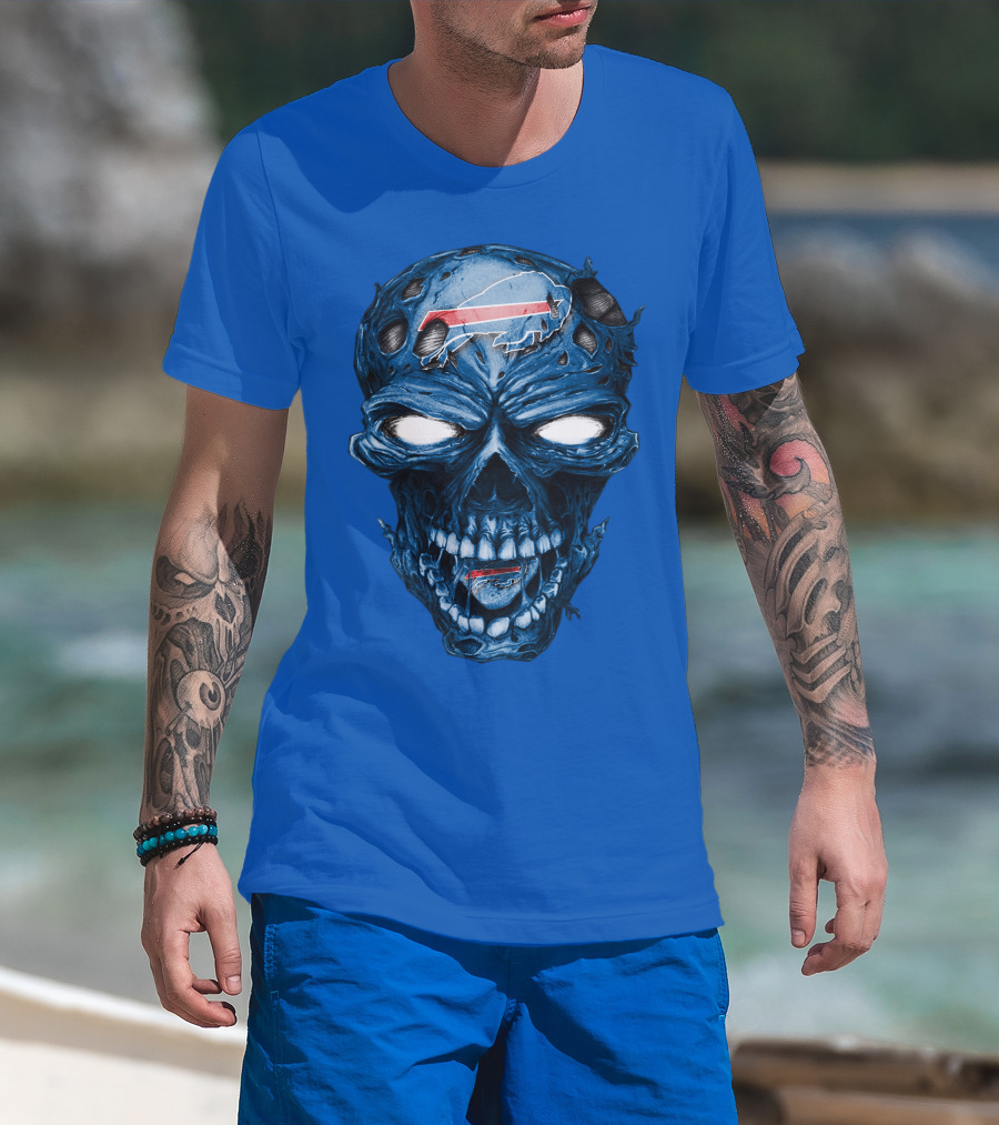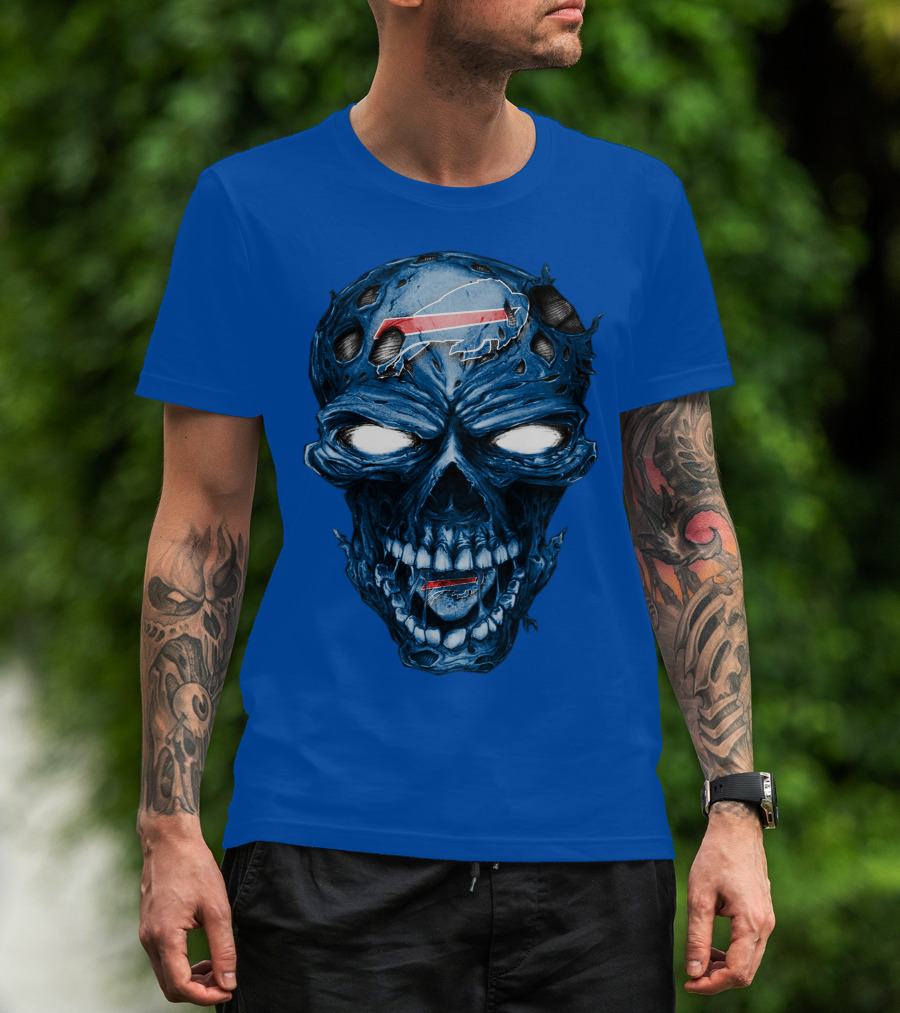 The Buffalo Bills Skull Logo Horror T-shirt is designed for everyday wear and a consistent fit. Fabric is pre-shrunk ring-spun cotton with durable stitching. See the size chart below for exact measurements.