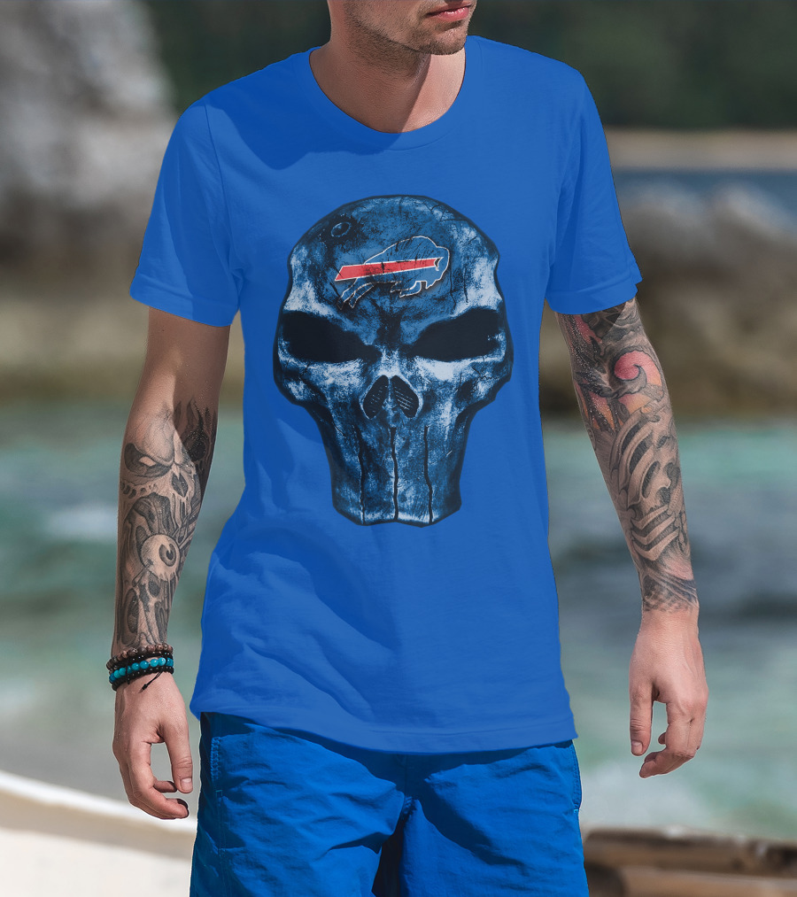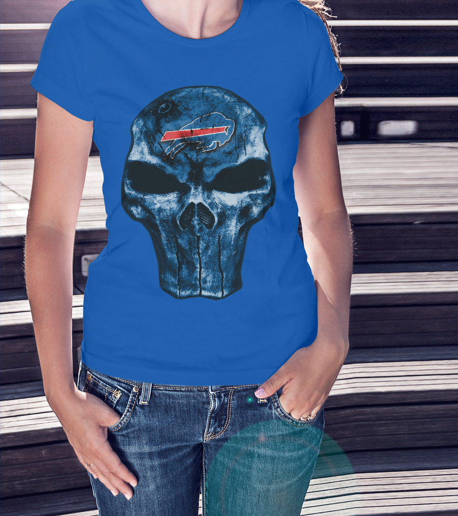 The Buffalo Bills Skull Fan T-shirt is designed for everyday wear and a consistent fit. Fabric is pre-shrunk ring-spun cotton with durable stitching. See the size chart below for exact measurements.