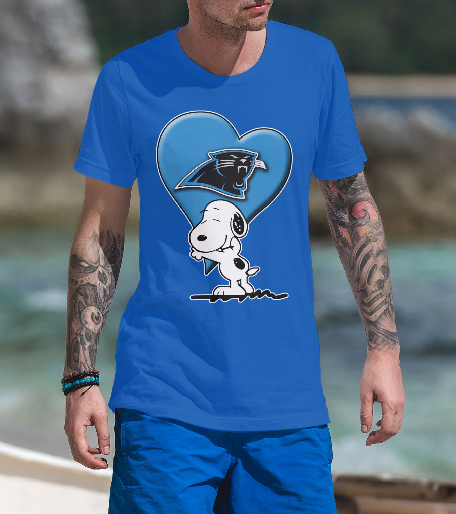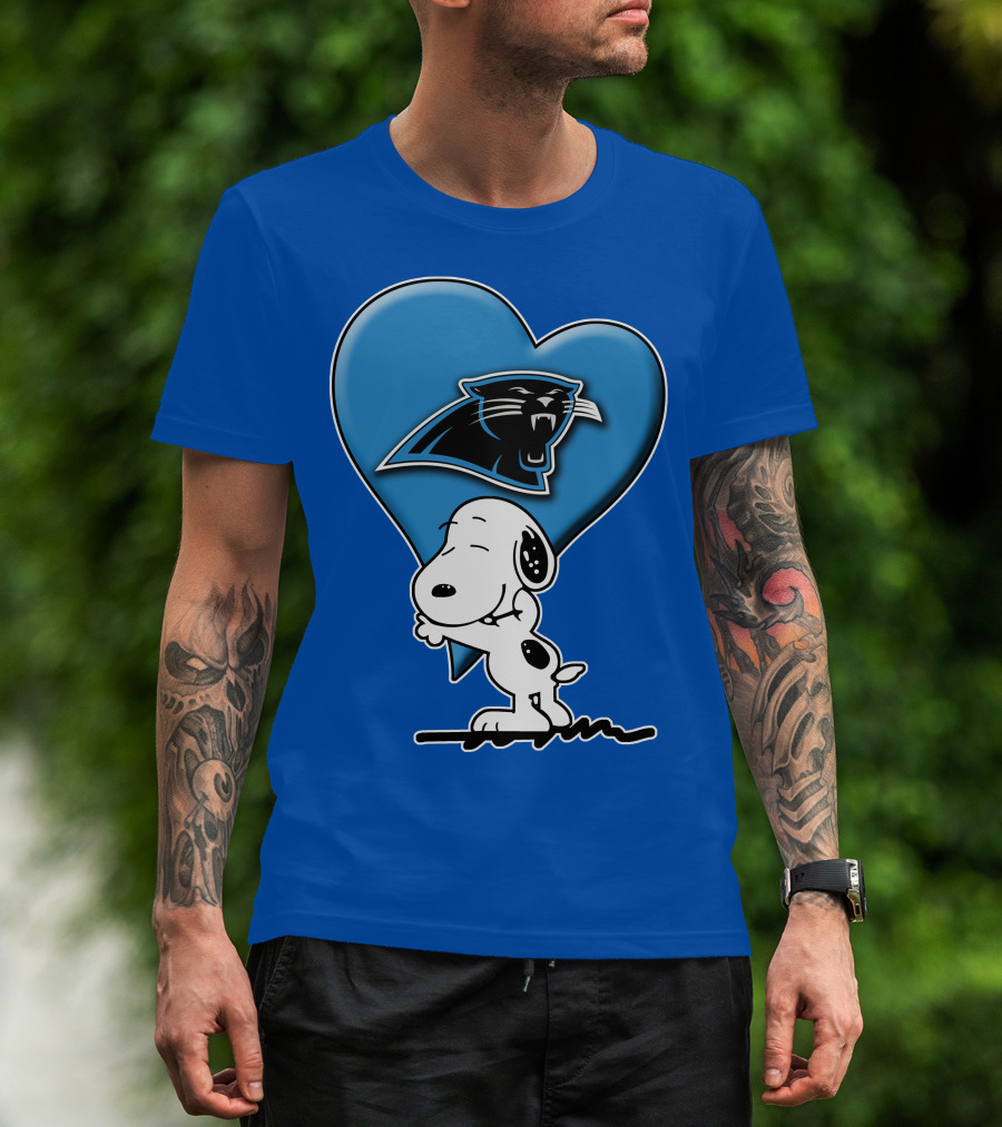 Snoopy Hugging Carolina Panthers Heart With Iconic T-Shirt